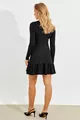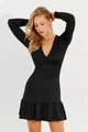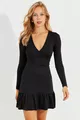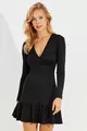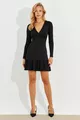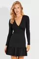 Abito Mini Donna Nera con Gonna a Volant e Chiusura Incrociata