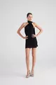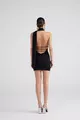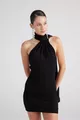 Abito Mini Bella Nero con Scollo a Sciarpa e Schiena Scoperta Glitterato