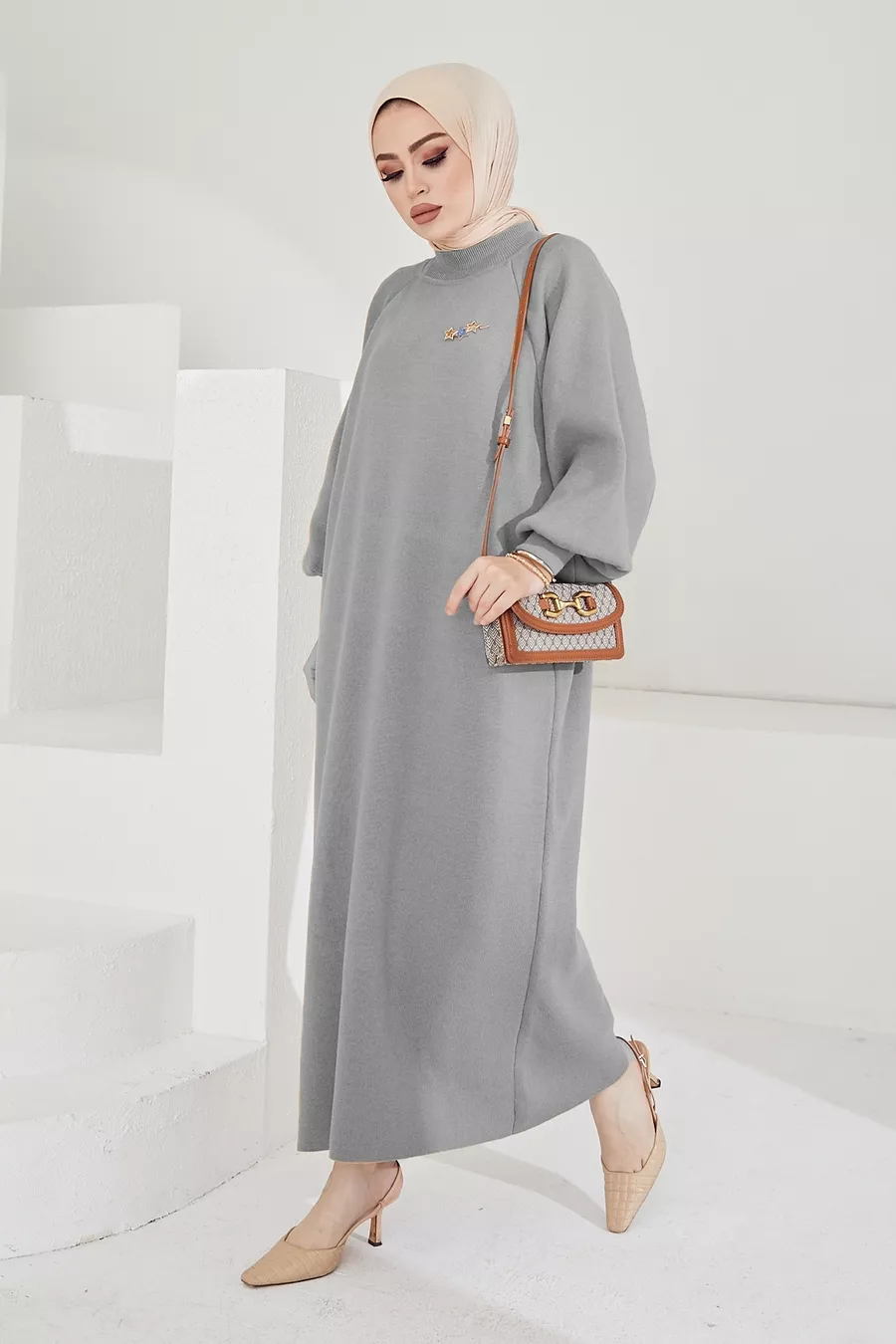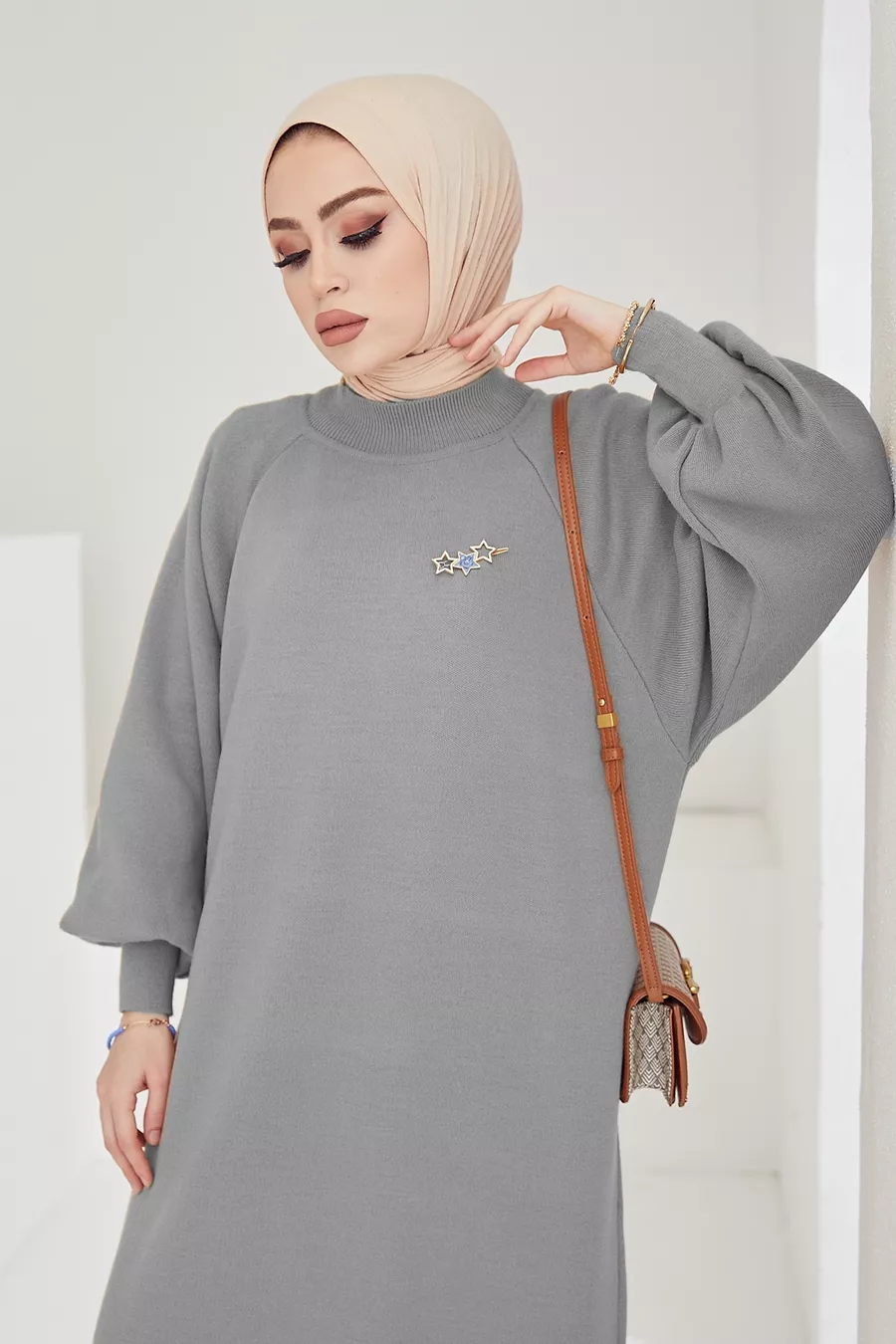 Abito Tricot Coprente con Maniche a Palloncino Mina - Grigio