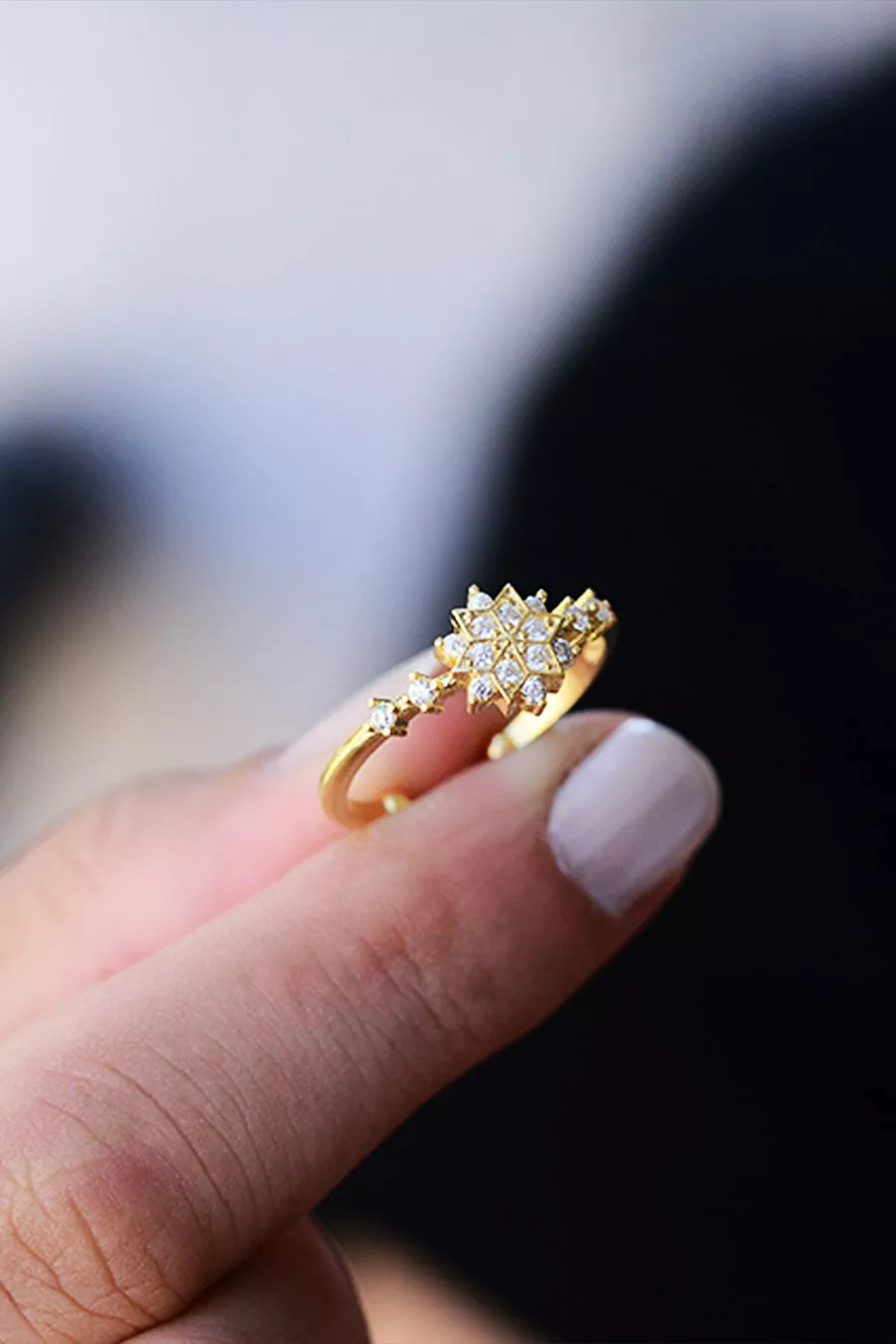 Anello da Donna Regolabile Fiocco di Neve Placcato Oro K