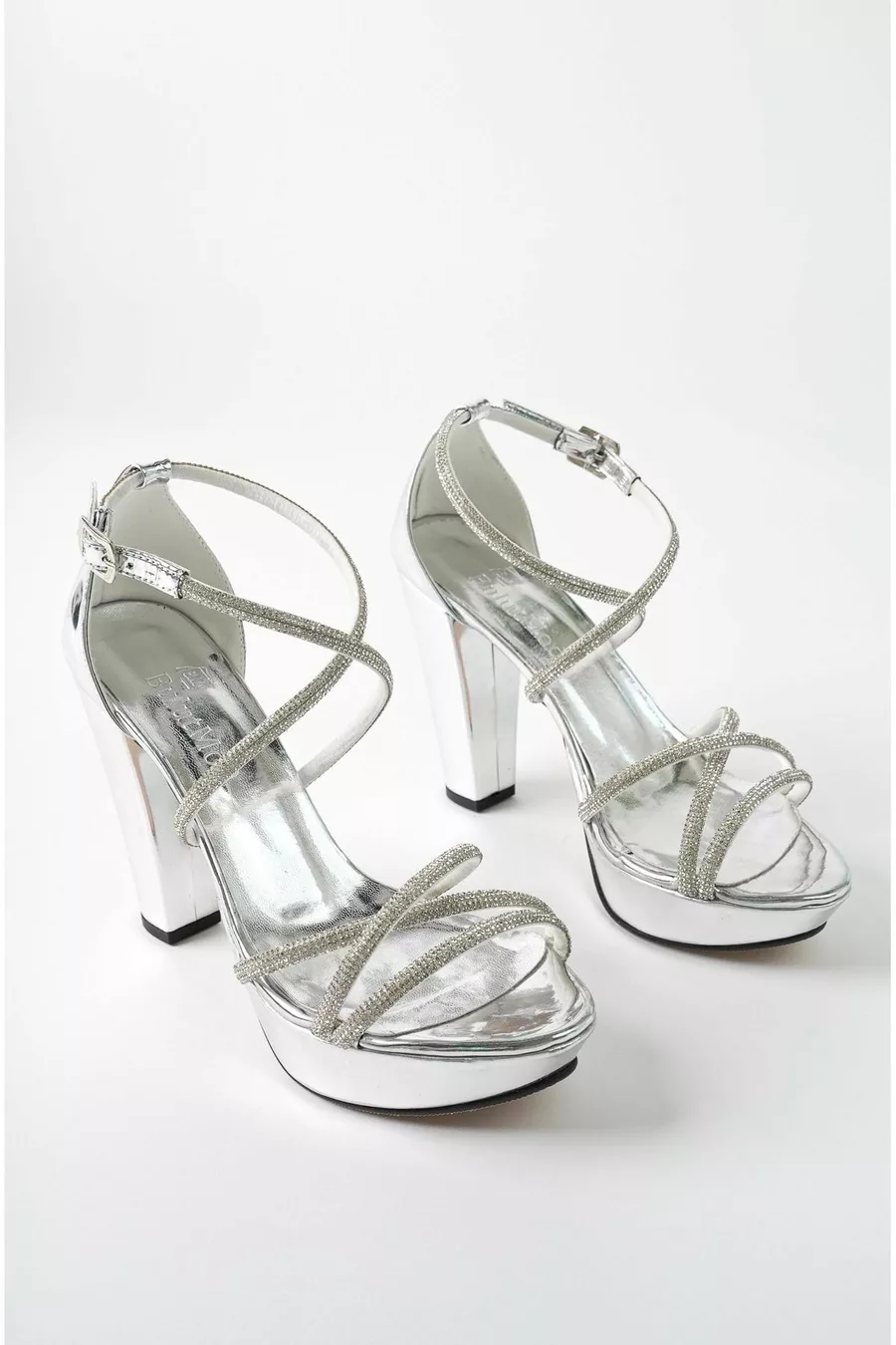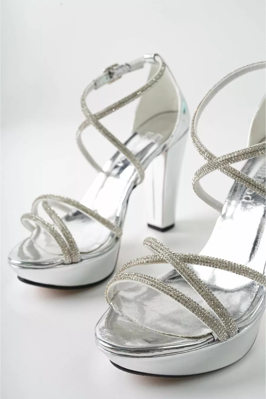 Argento Abito da sera da donna con croce alla caviglia in pietra Plateau cm Tacchi - Argento -