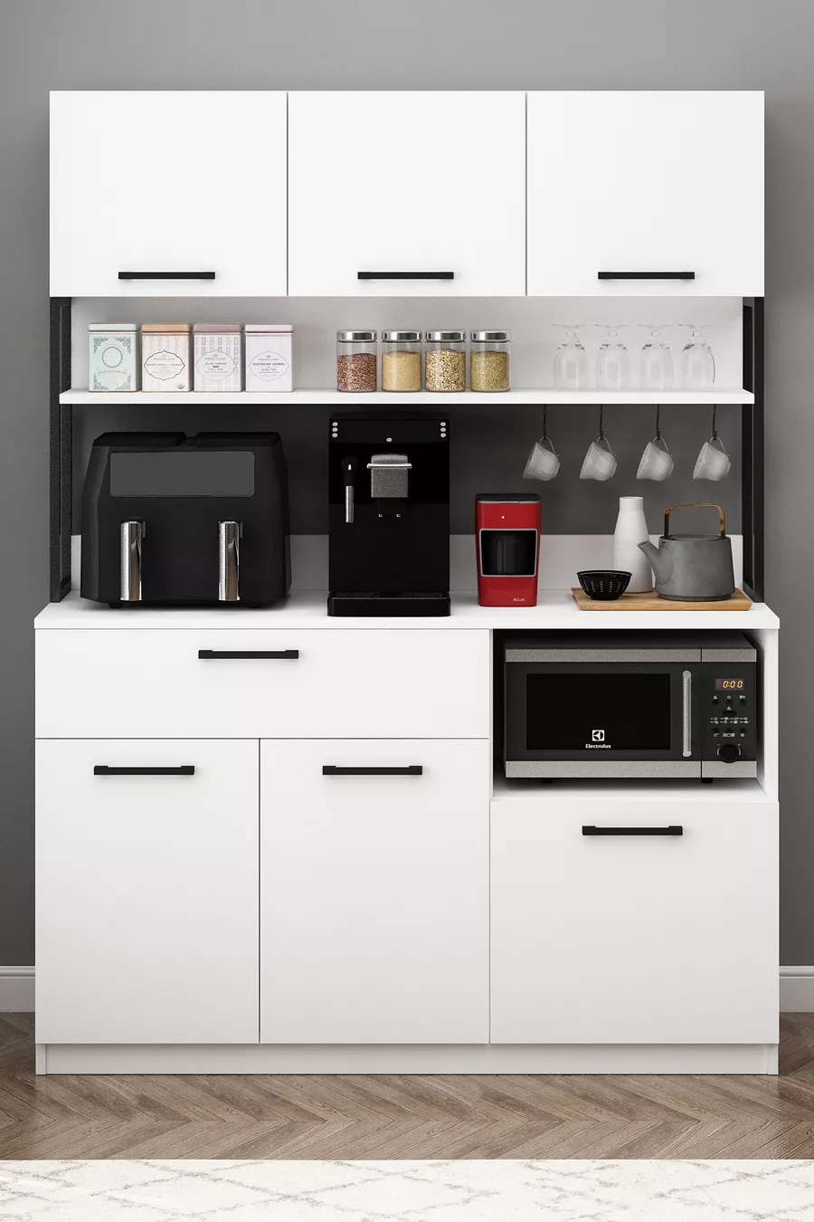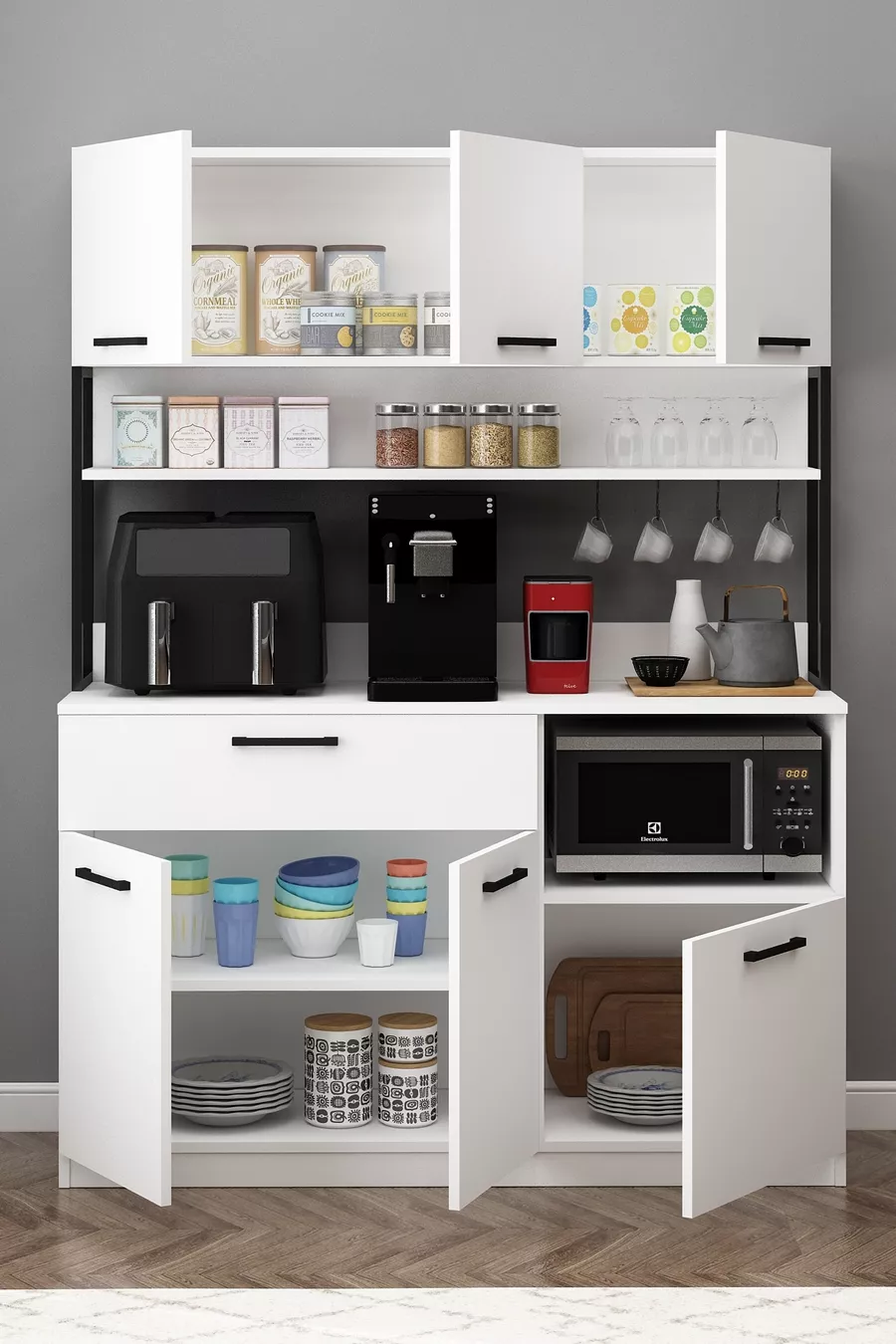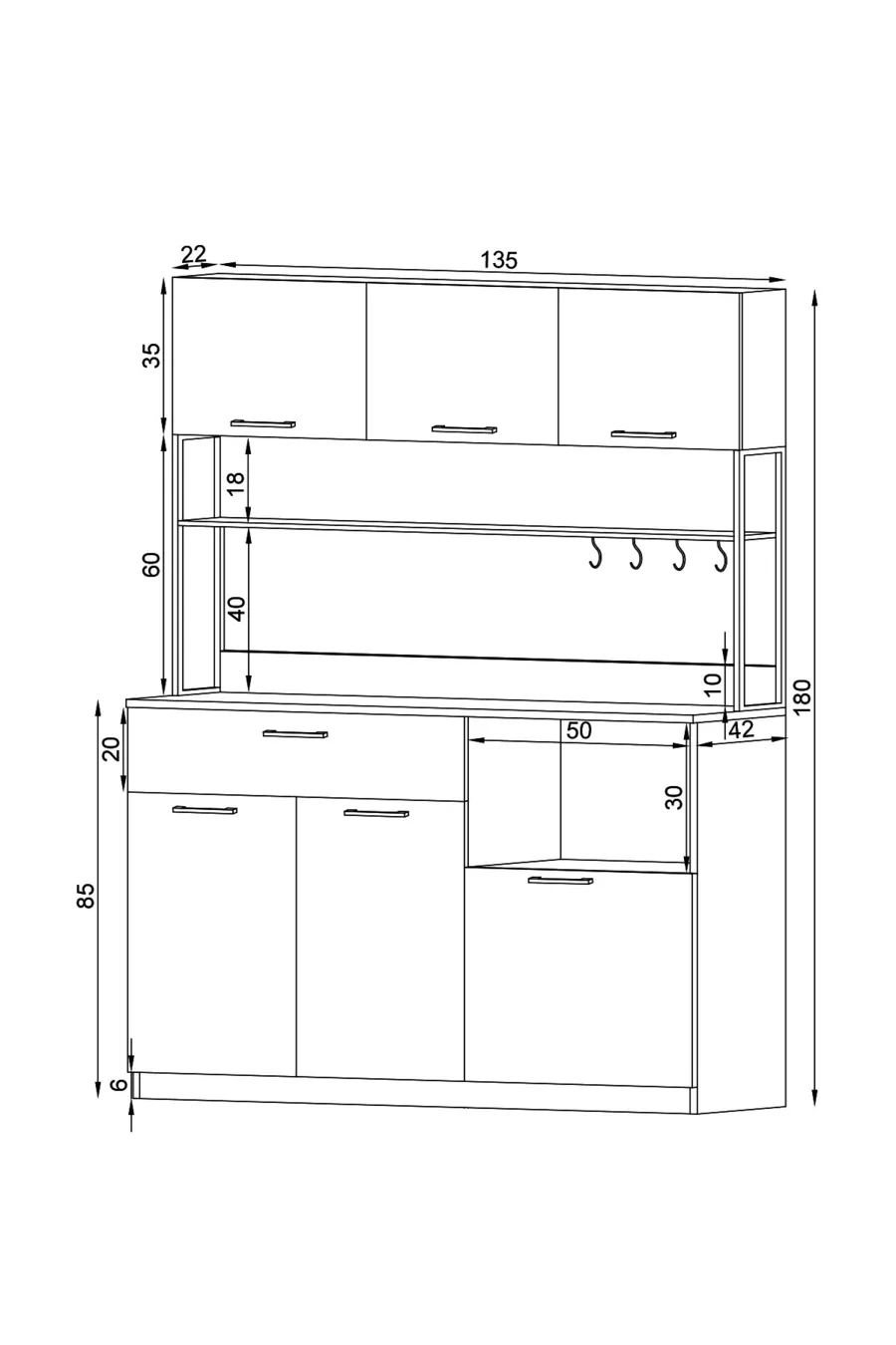 Materiale: Suntalam Numero di cassetti: Multiplo Colore: Bianco Modello: Verticale Altezza: 180 cm Larghezza: 135 cm Profondità: 42 cm Periodo di garanzia: 2 anni Stile: Retrò Tema / Stile: Moderno Origine: TR Caratteristica: Con anta