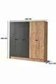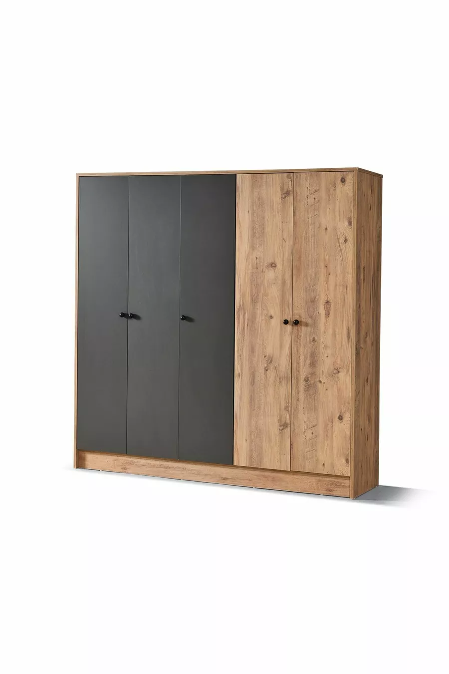 Armadio Diva a 5 Ante con Ripiani, Appendini e Scomparti, Pino Atlantico e Antracite, Cm