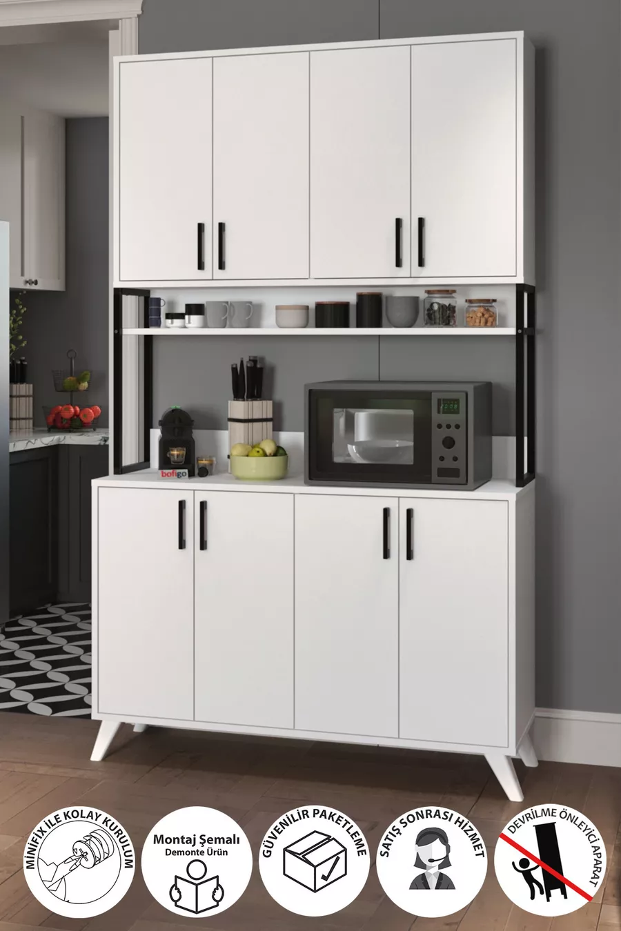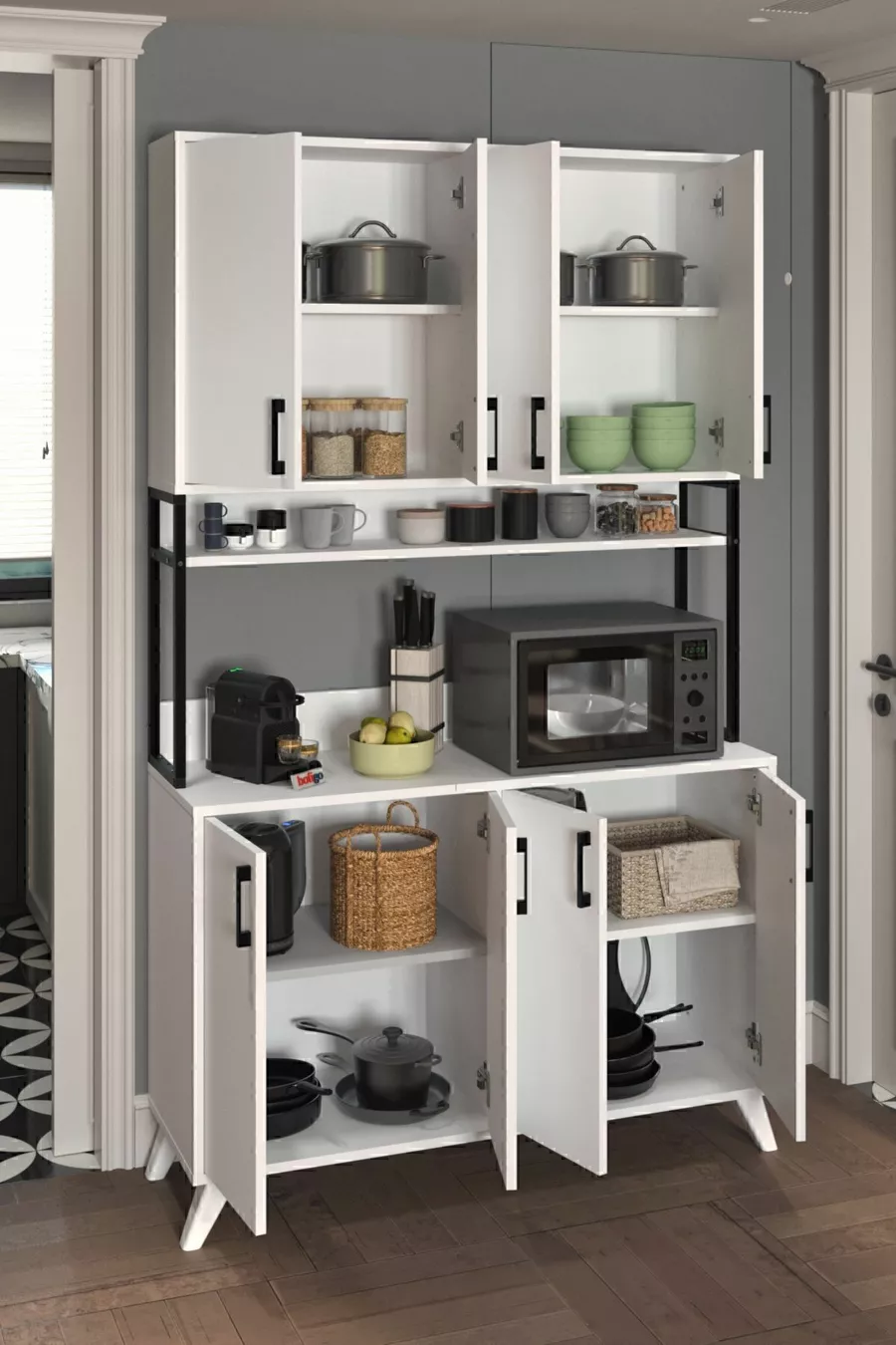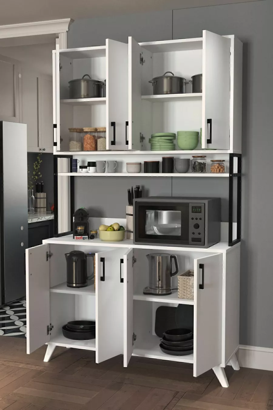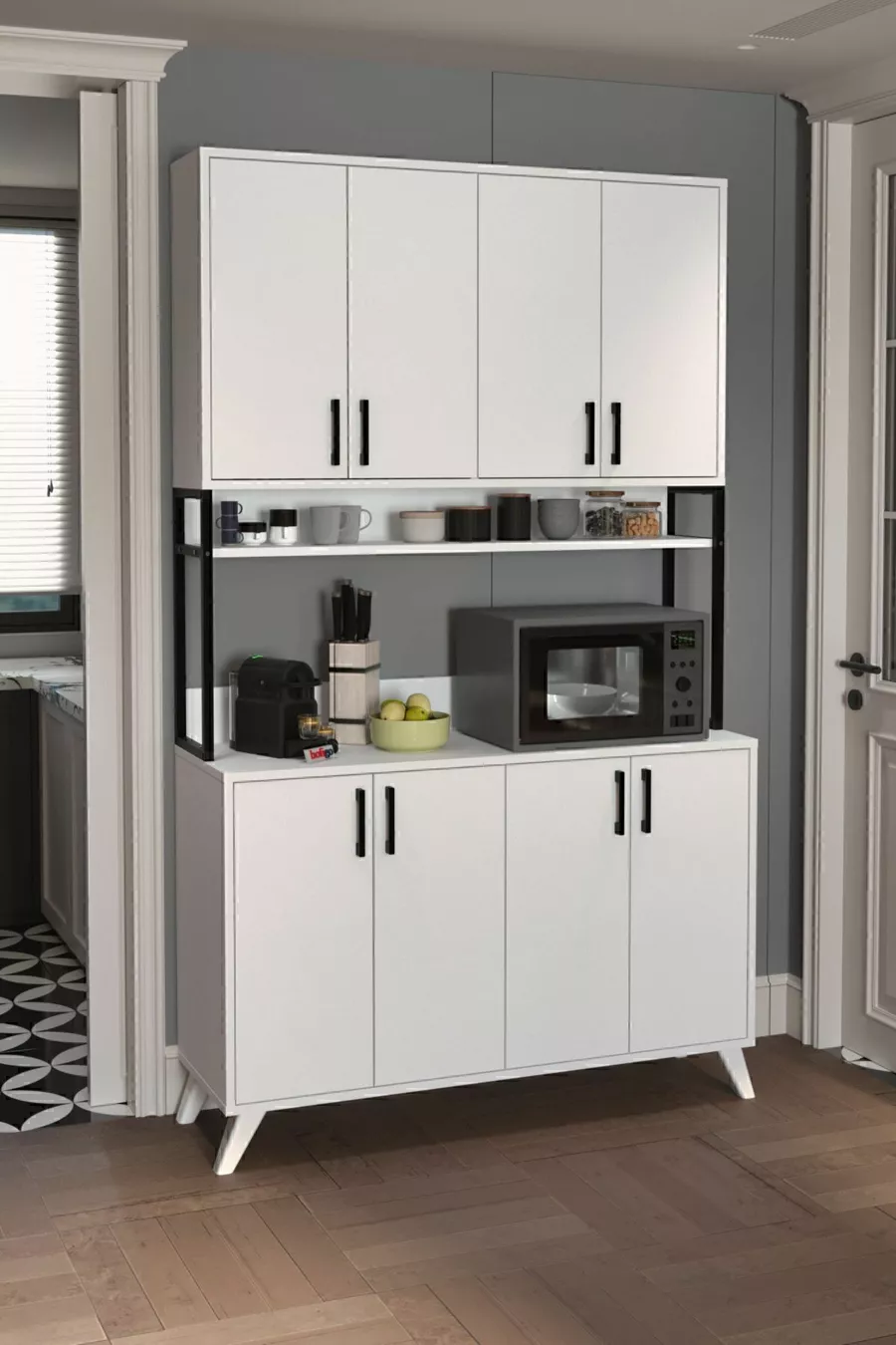 Armadio Multiuso a 8 Ante Defne Armadio da Cucina Armadio Dispensa Armadio Scaffale Bianco
