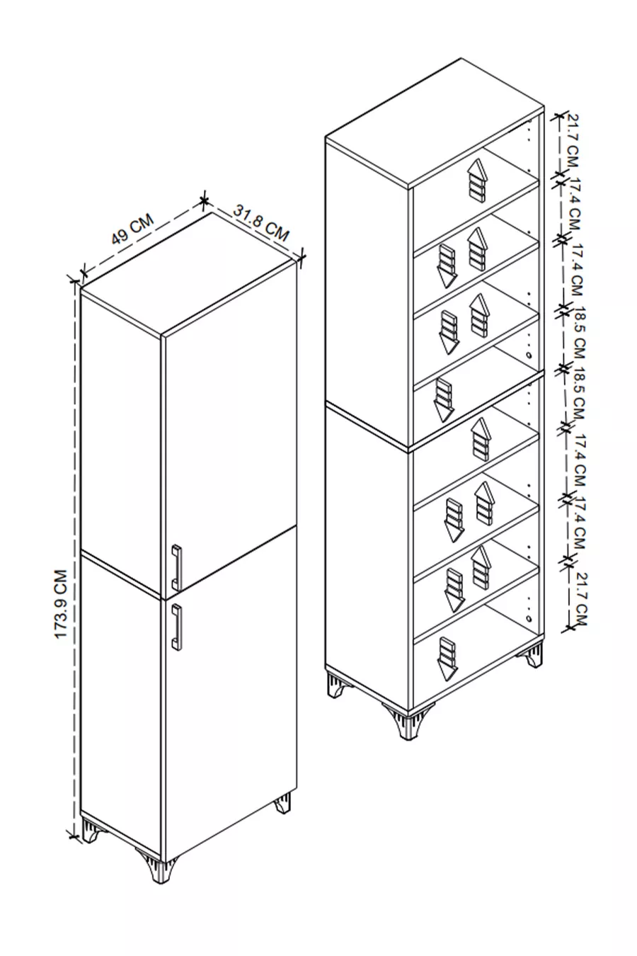 Materiale: Suntalam Numero di cassetti: 1 Colore: Bianco Modello: Verticale Altezza: 174 cm Larghezza: 49 cm Profondità: 32 cm Periodo di garanzia: 1 anno Stile: Moderno Tema / Stile: Moderno Provenienza: TR Caratteristica: Con anta