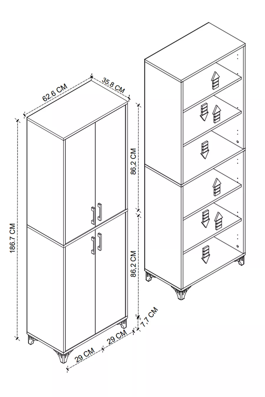 Materiale: Suntalam Numero di cassetti: Multipli Colore: Marrone Modello: Verticale Altezza: 186 cm Larghezza: 62 cm Profondità: 36 cm Durata della garanzia: 2 anni Stile: Moderno Tema / Stile: Moderno Provenienza: TR Caratteristica: Con anta