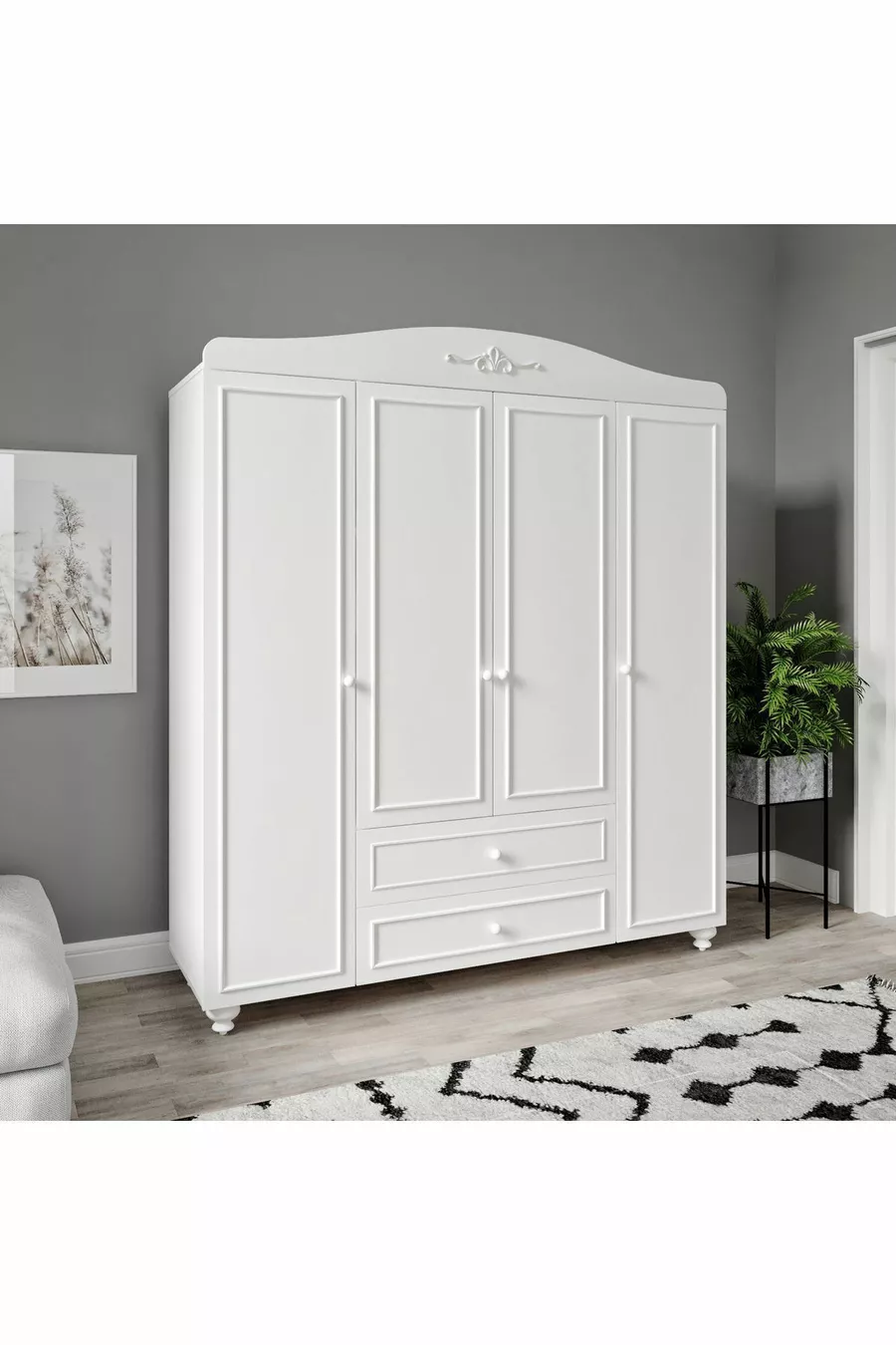 Armadio Romantic a 4 ante, 2 cassetti, in stile avanguardista (% MDF)