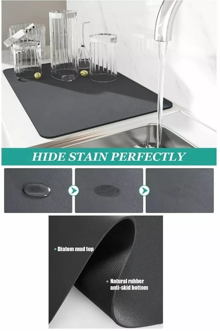 Asciugamano per stoviglie nero, tappetino per stoviglie da banco, molto assorbente