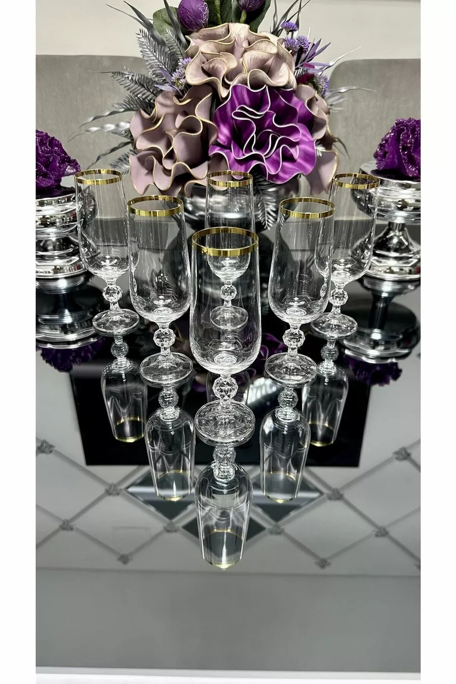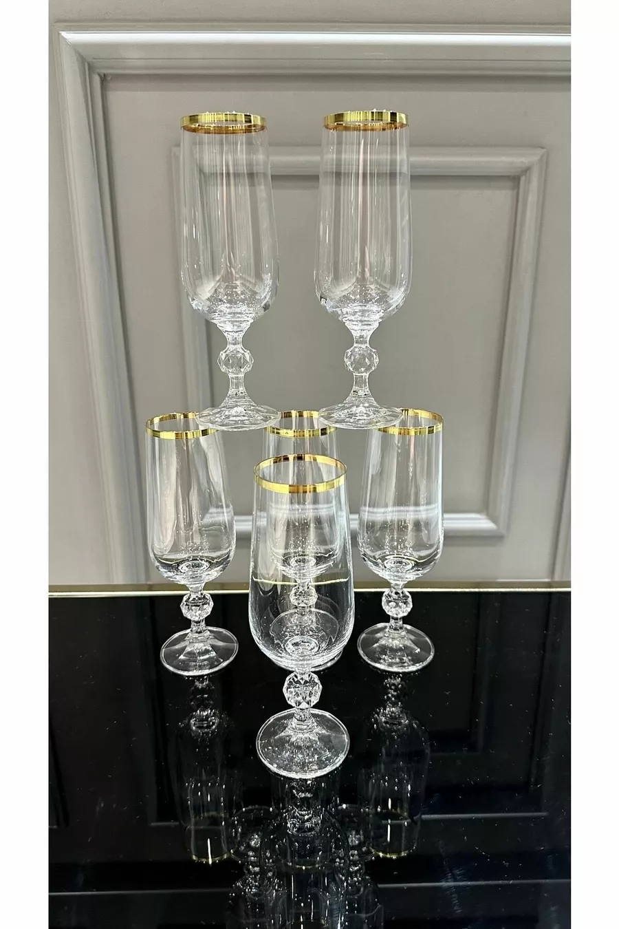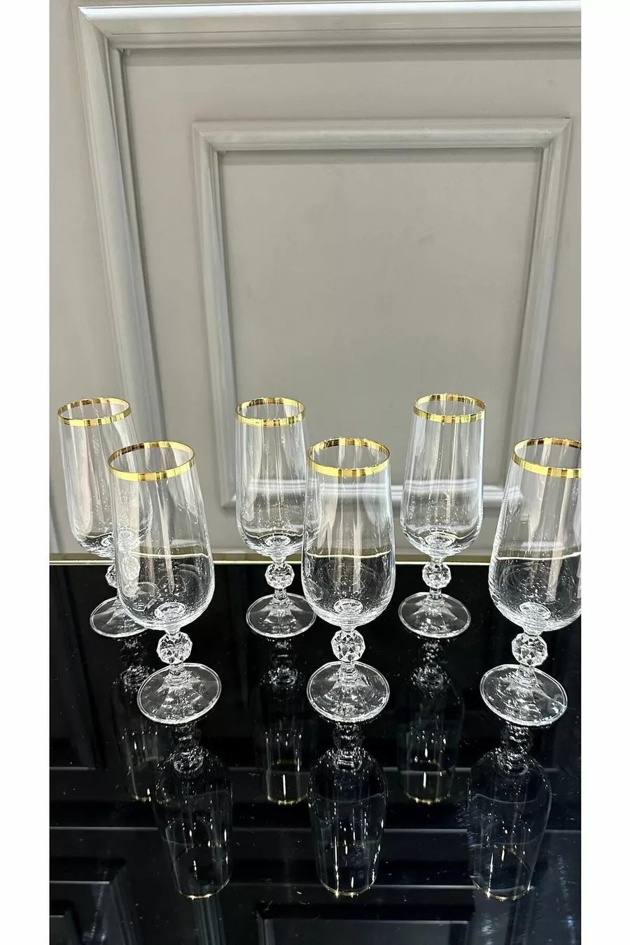 Materiale: Vetro Numero di pezzi: 6 Colore: Oro Capacità: 180 ml Caratteristica: Lavabile a mano Tipo di prodotto: Bicchiere da caffè Origine: CZ Simbolo contatto alimentare: Sì Istruzioni per la cura (contatto alimentare): Lavare a mano.