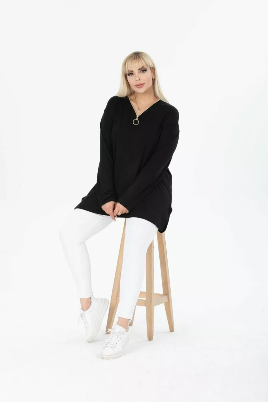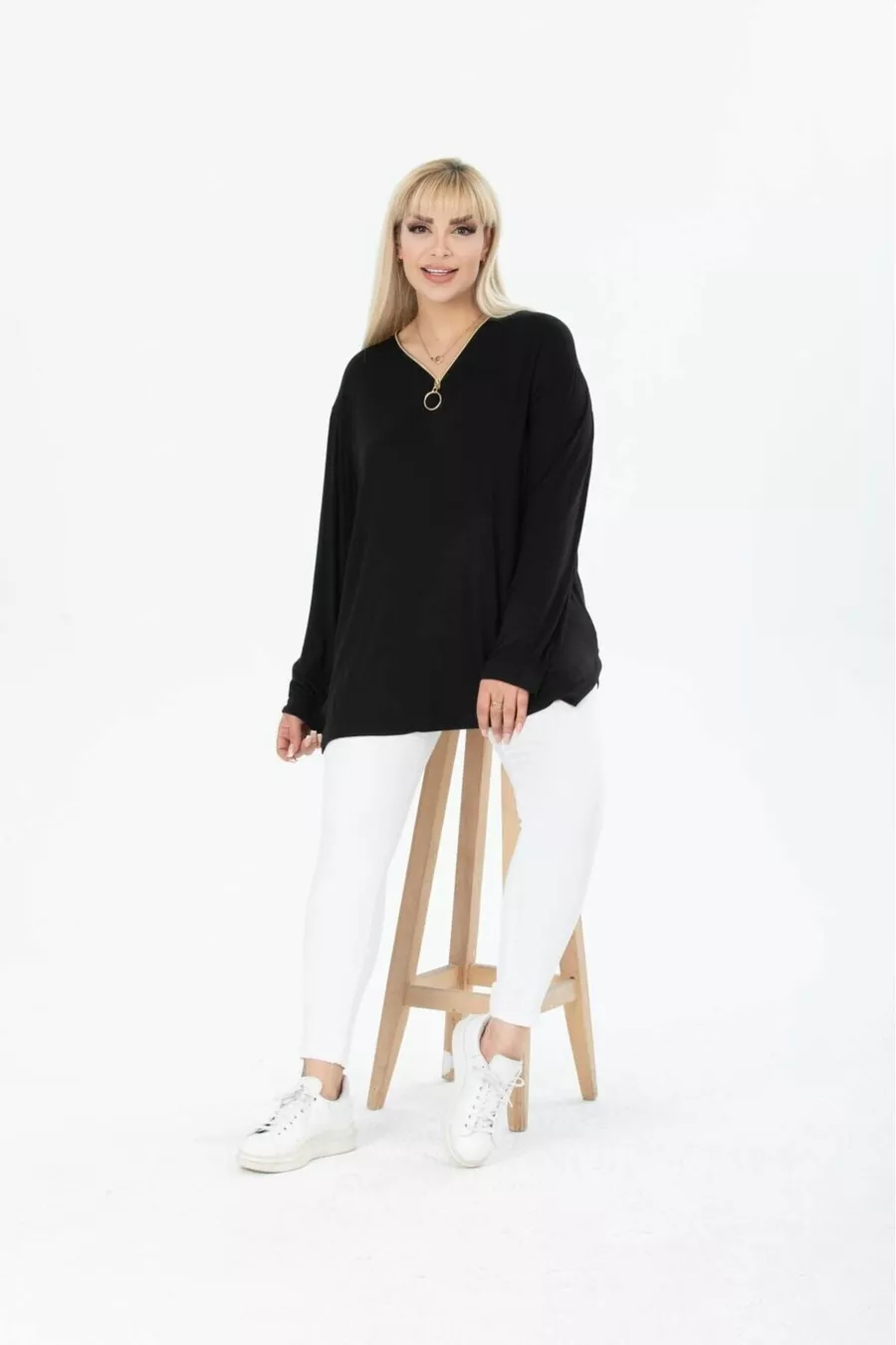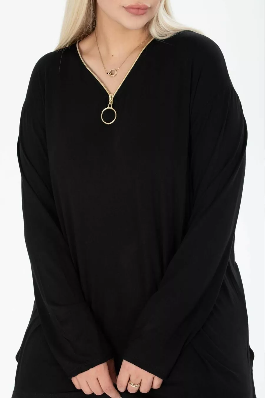BLUSA A MANICHE LUNGHE CON COLLETTO NERO E ZIP