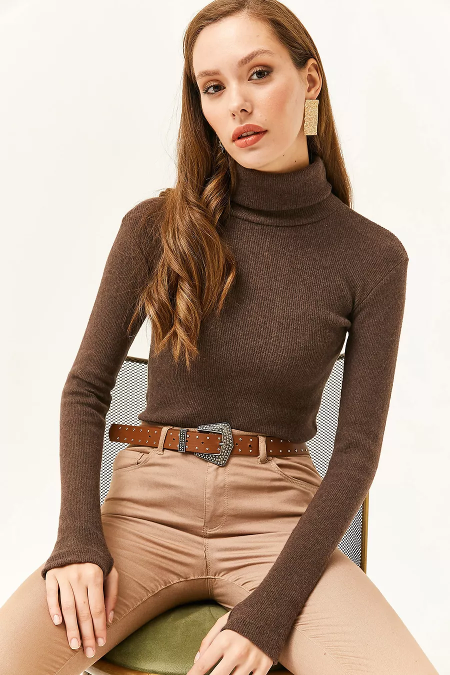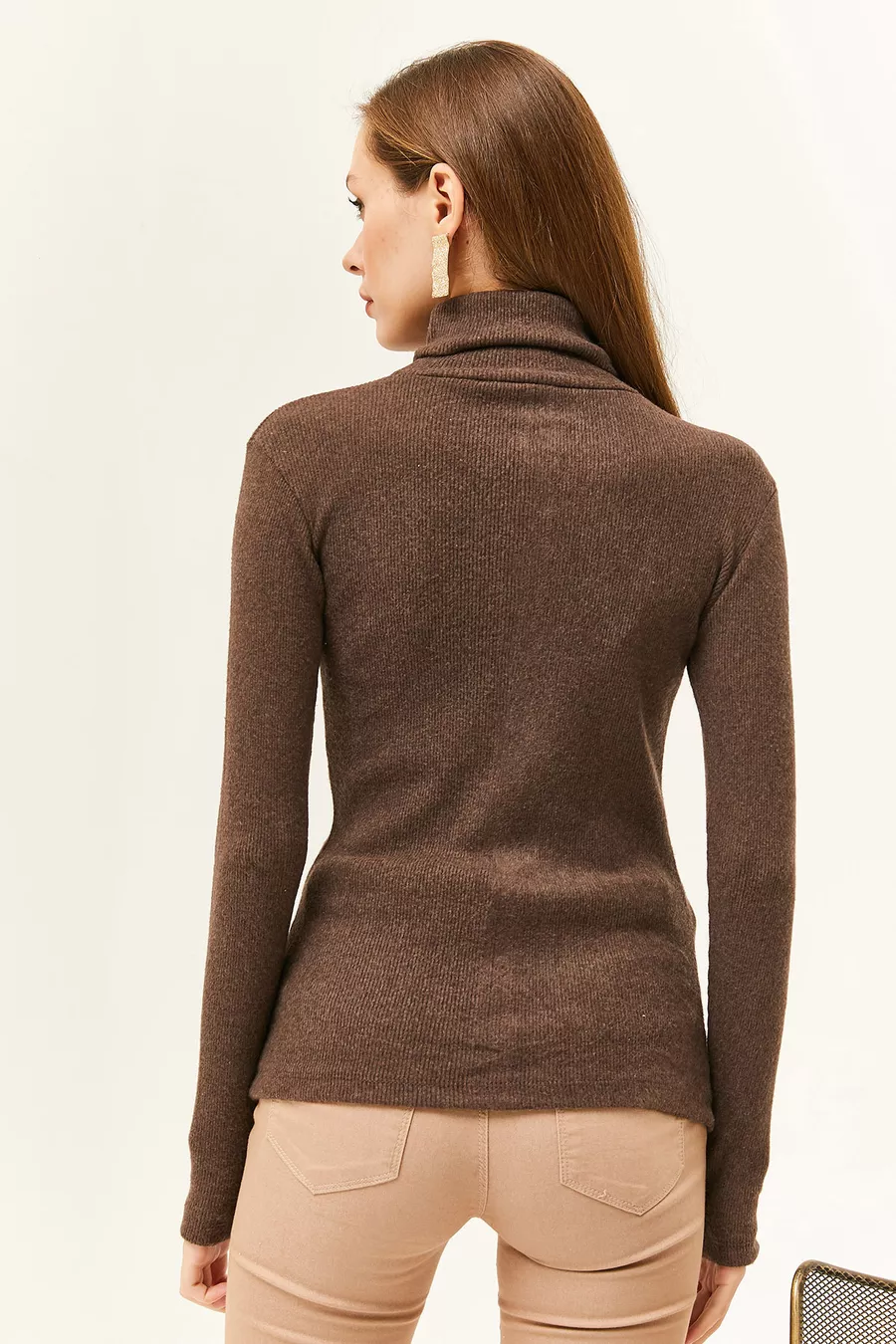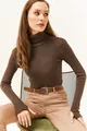 Blusa da donna in lycra con collo alla marinara, dettaglio a dita e colore caffè amaro