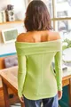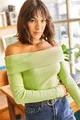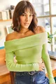 Blusa da donna verde pistacchio con scollo Madonna e maglia coste