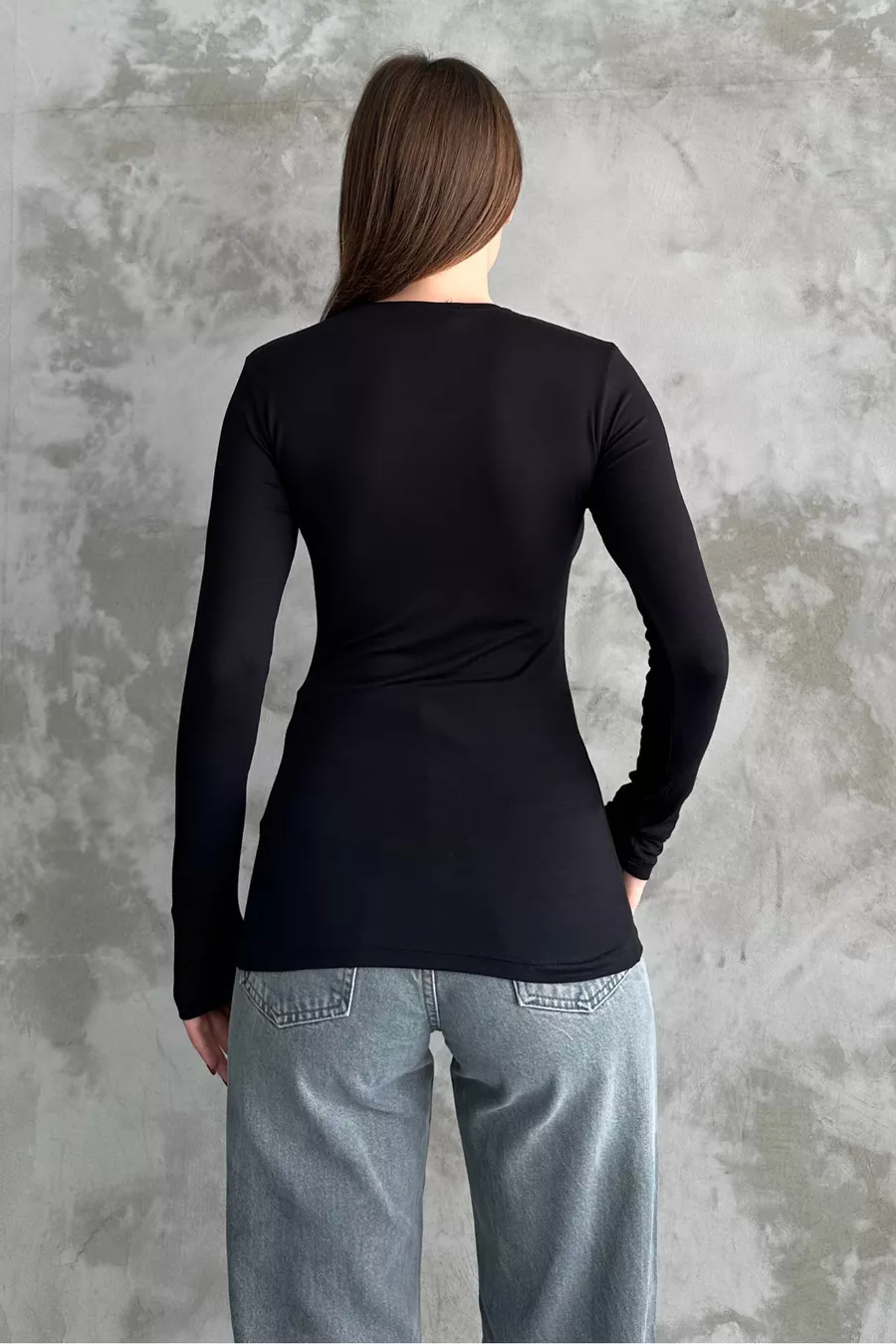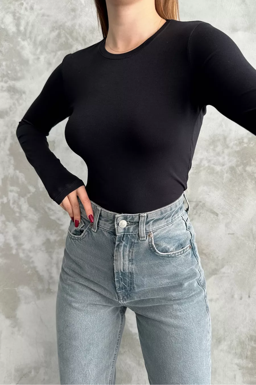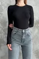 Body Basic a Maniche Lunghe con Scollo Girocollo Nero