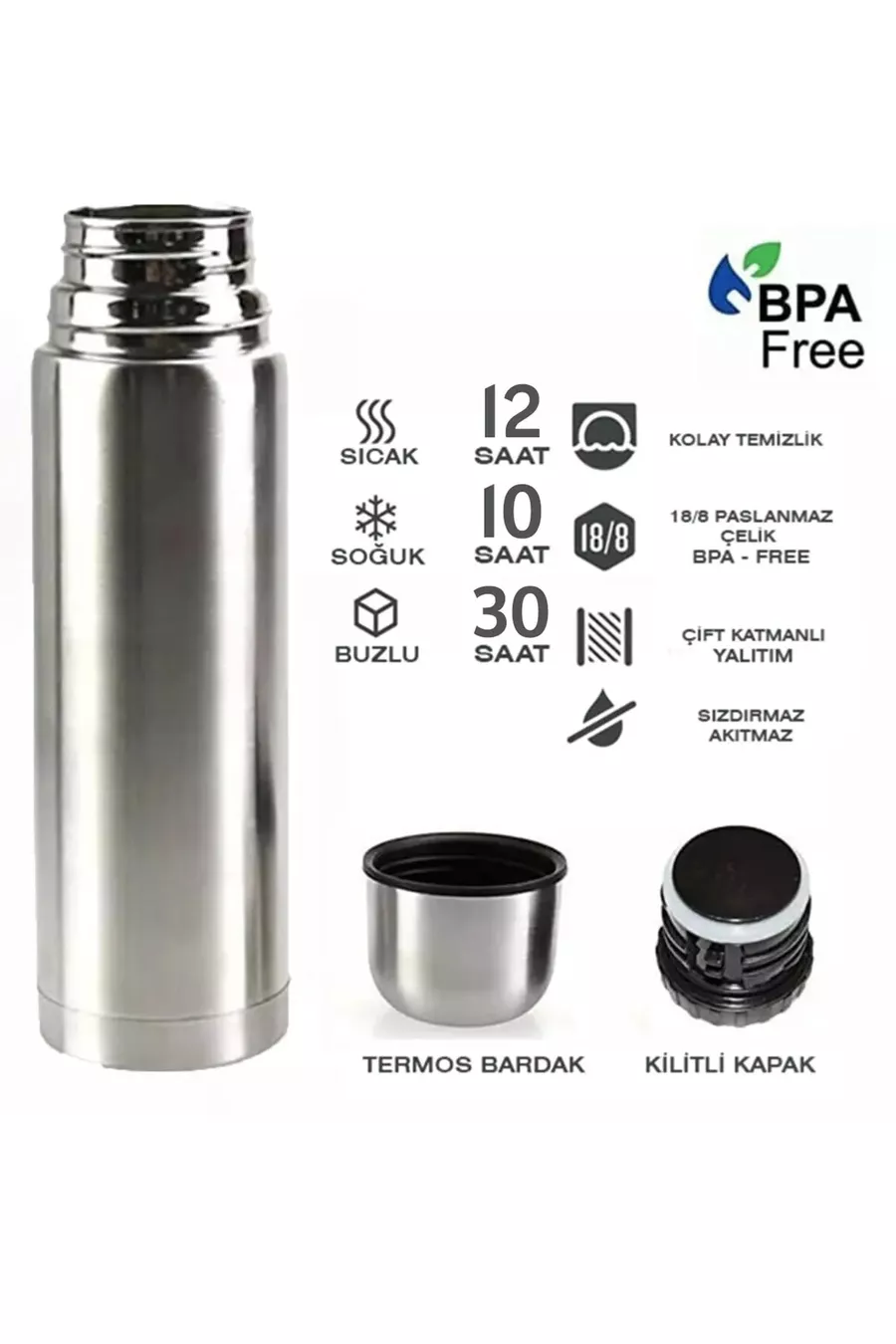 Tempo di isolamento: 12 ore Capacità: 0,75 L Materiale: Acciaio inossidabile Colore: Argento Modello: Bevande