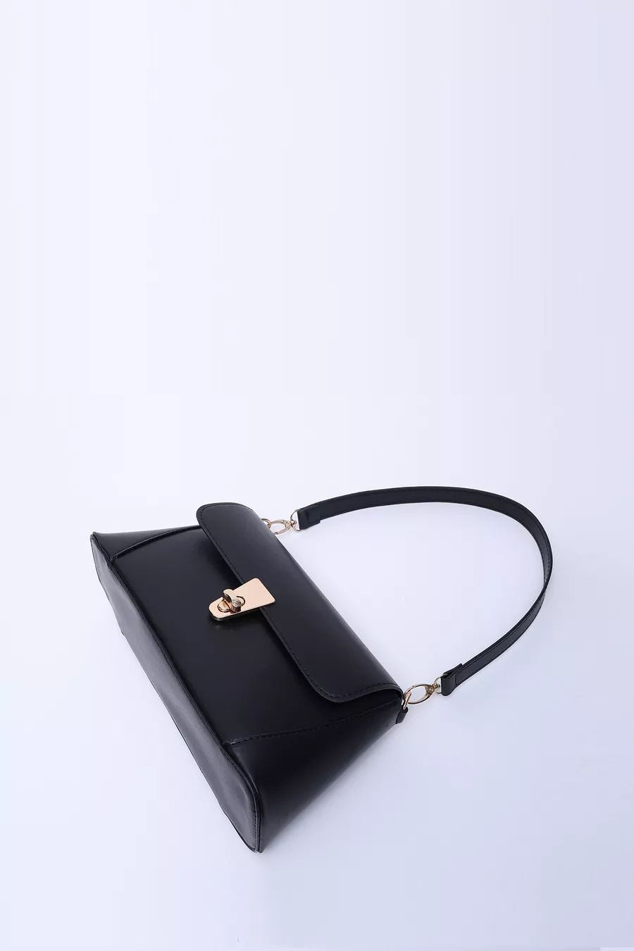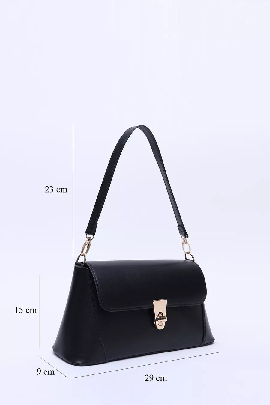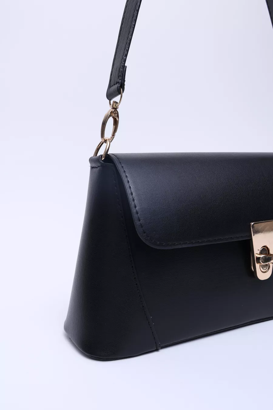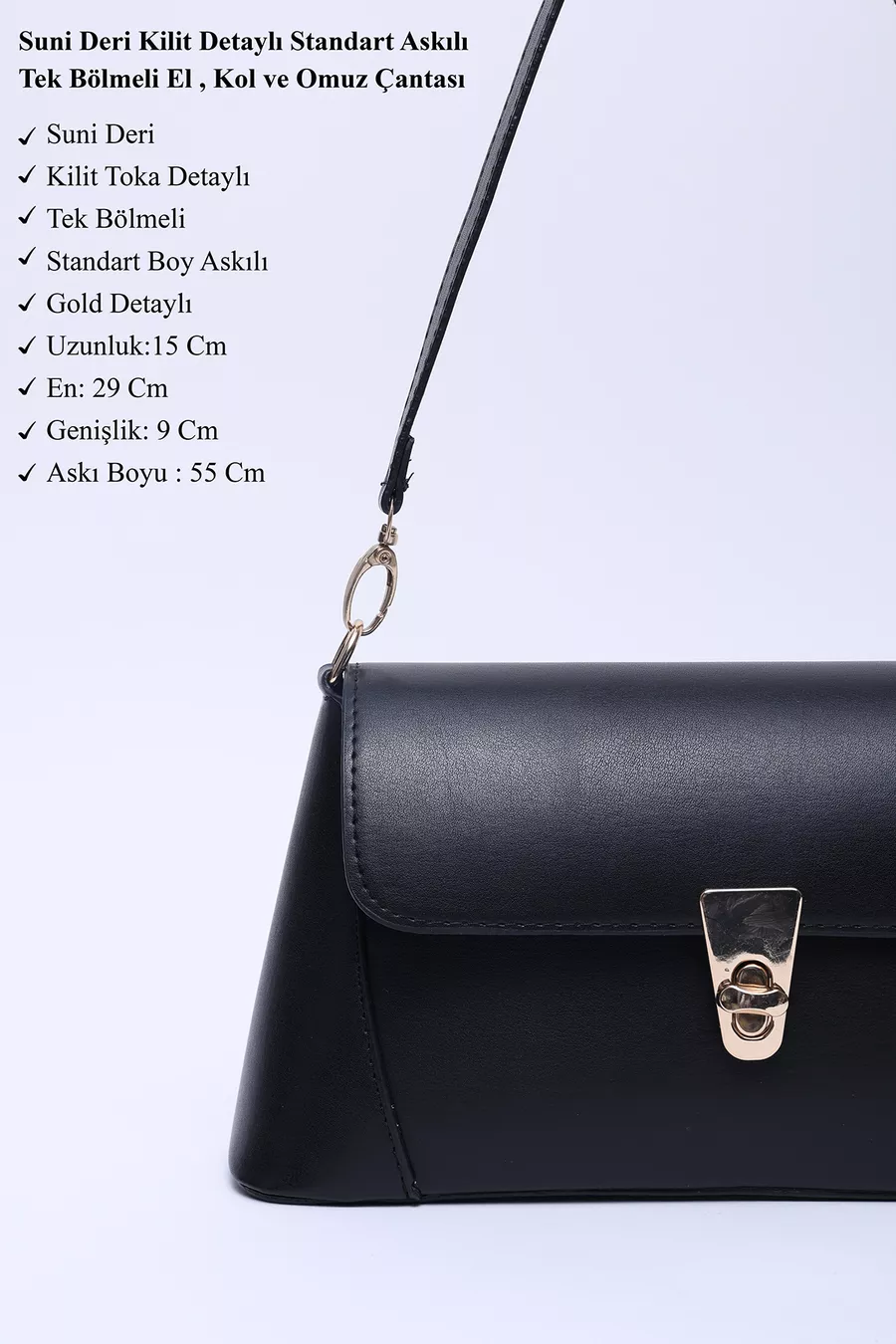 Borsa a spalla nera in pelle sintetica con chiusura e tasca singola, manico, tracolla e spalla