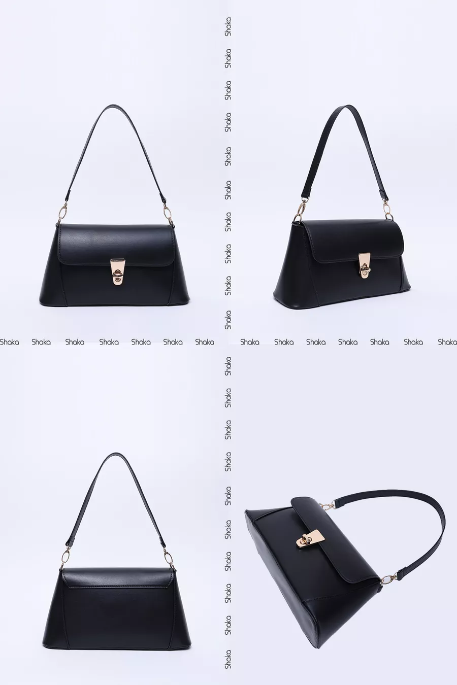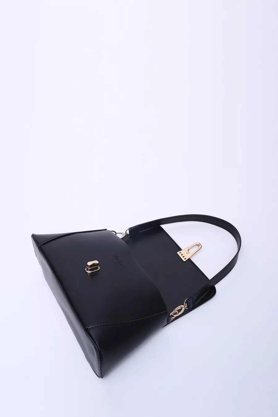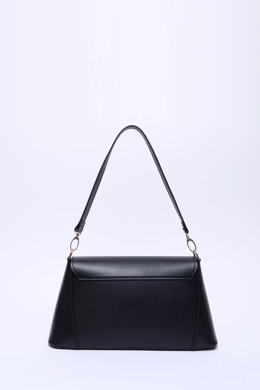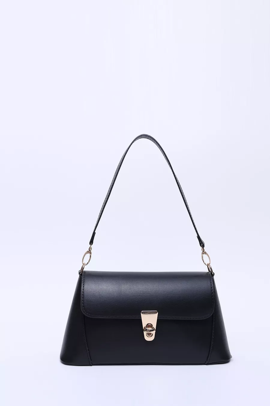 Borsa a spalla nera in pelle sintetica con chiusura e tasca singola, manico, tracolla e spalla