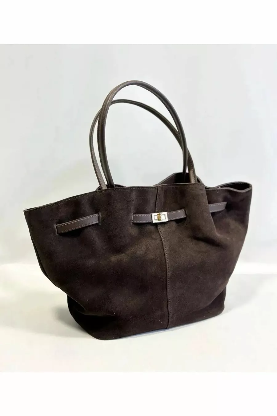 Borsa a tracolla da donna in vera pelle scamosciata SEDAT ÇAKAN STAPLED