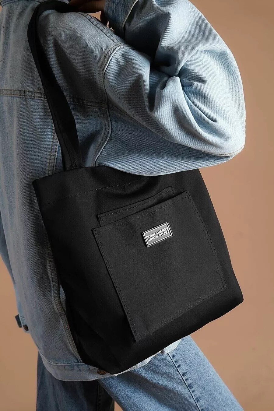Borsa da braccio e tracolla in tessuto morbido nero da donna