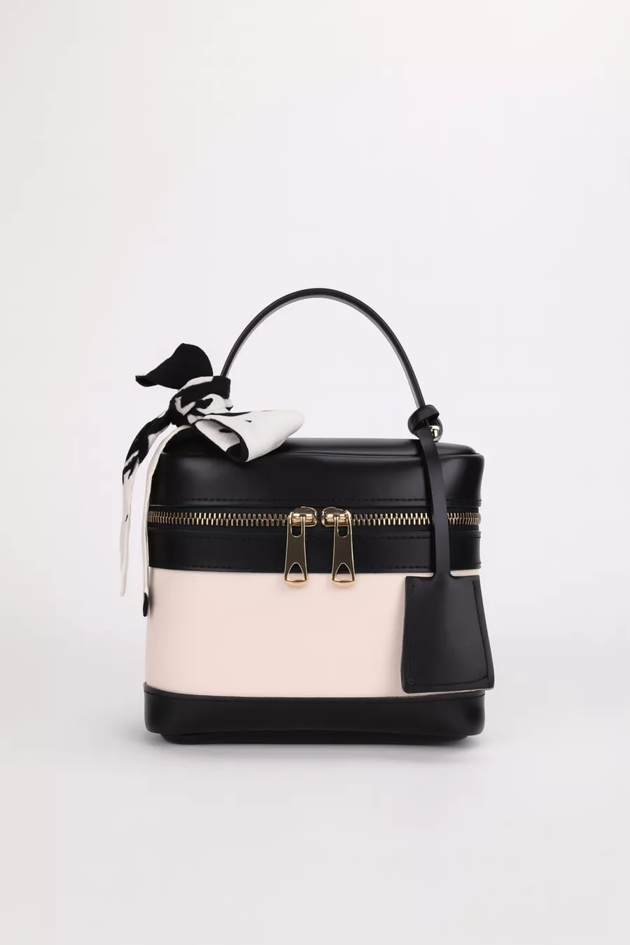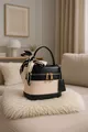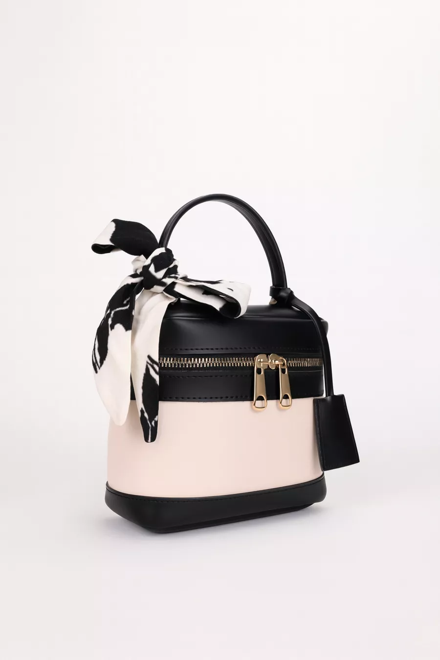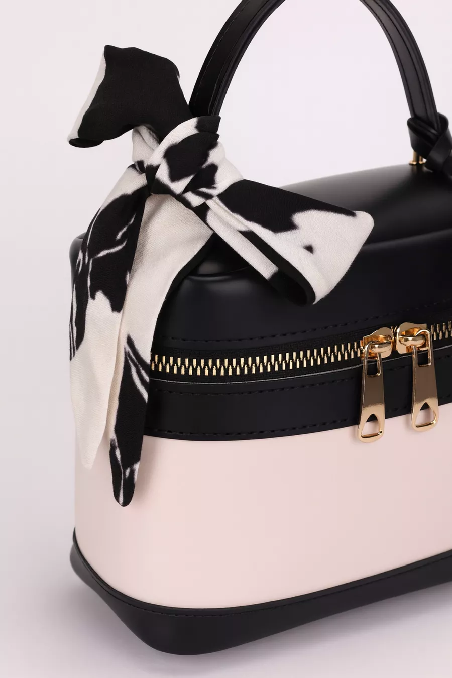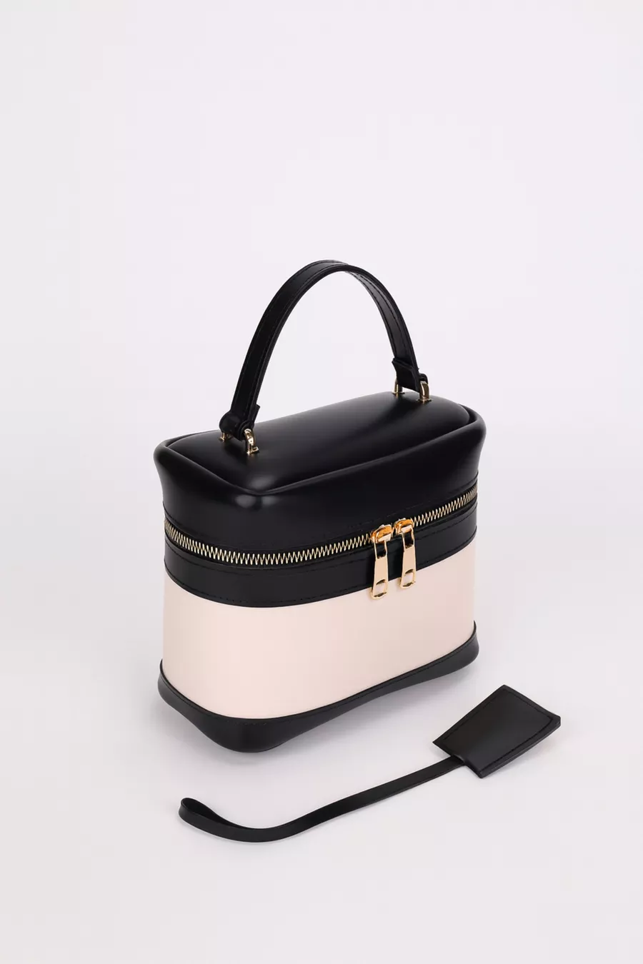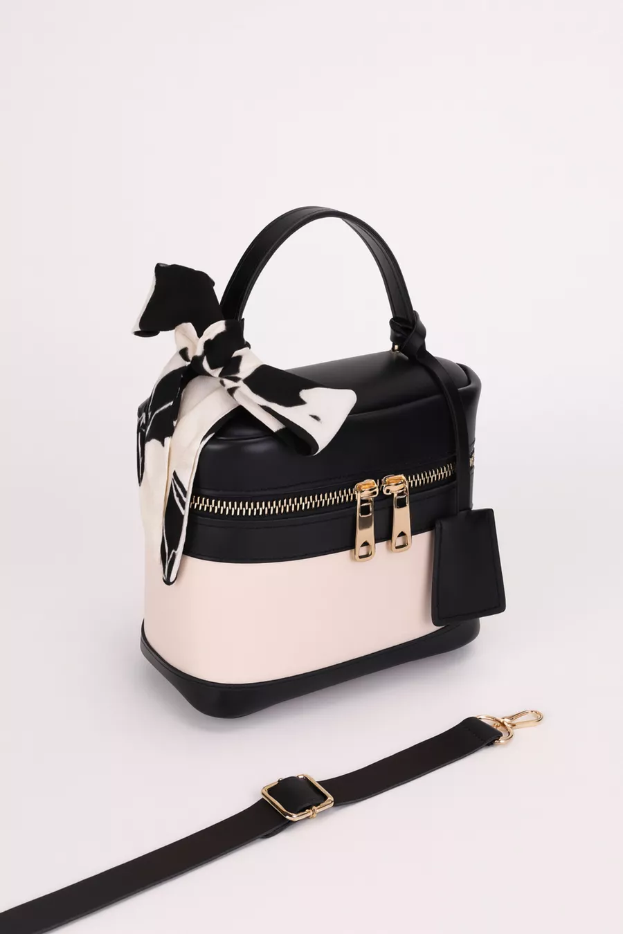 Borsa da donna nera e crema a tracolla con forma rettangolare per mano e spalla Melina
