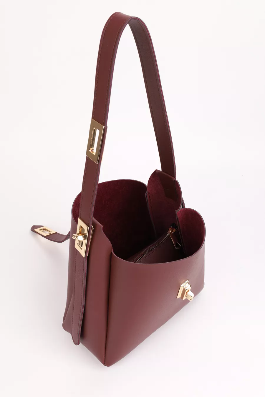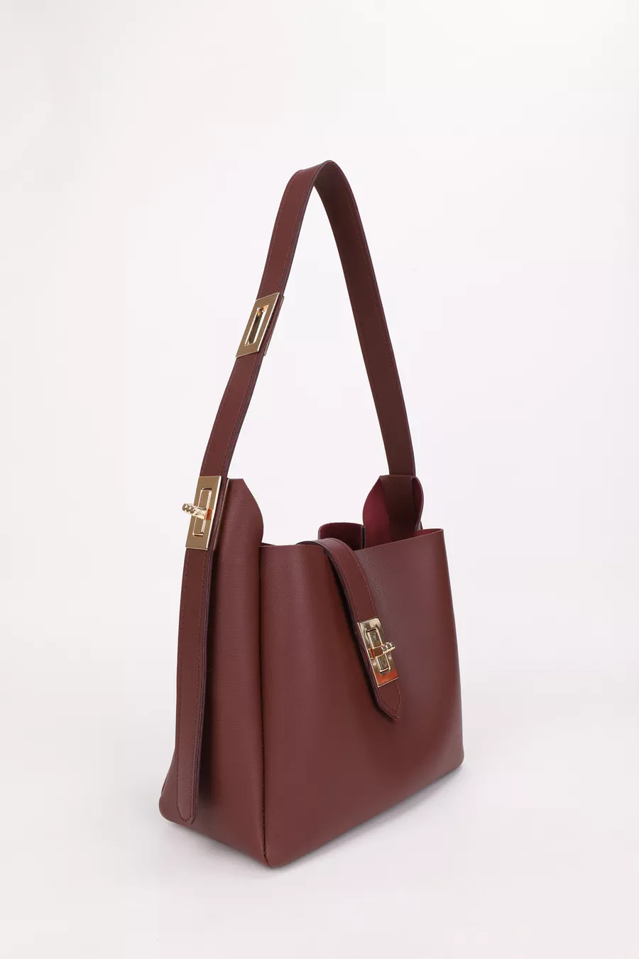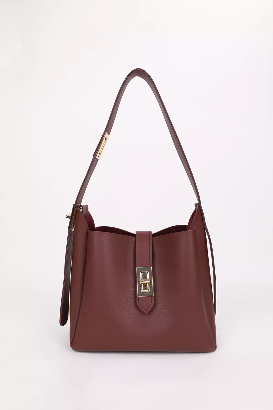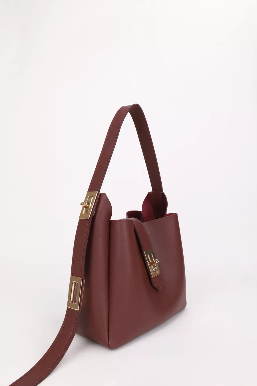 Borsa da donna con spallacci regolabili, dettagli in bordo oro e chiusura a lucchetto, da portare a mano, a spalla o a tracolla