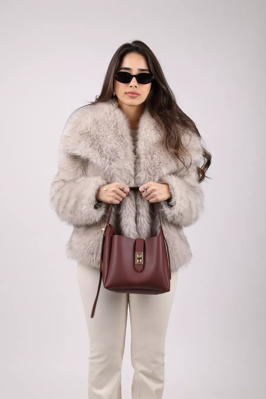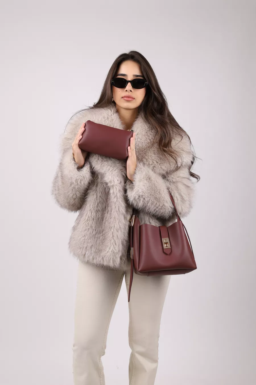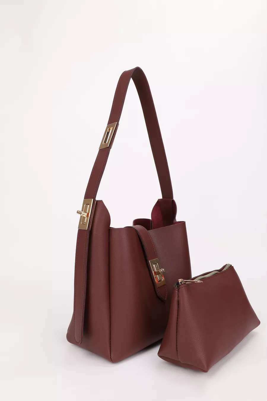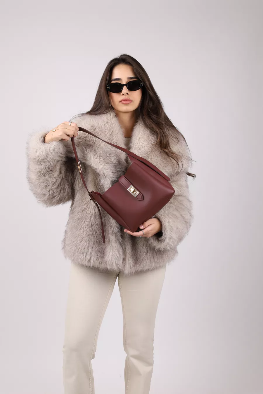 Borsa da donna con spallacci regolabili, dettagli in bordo oro e chiusura a lucchetto, da portare a mano, a spalla o a tracolla