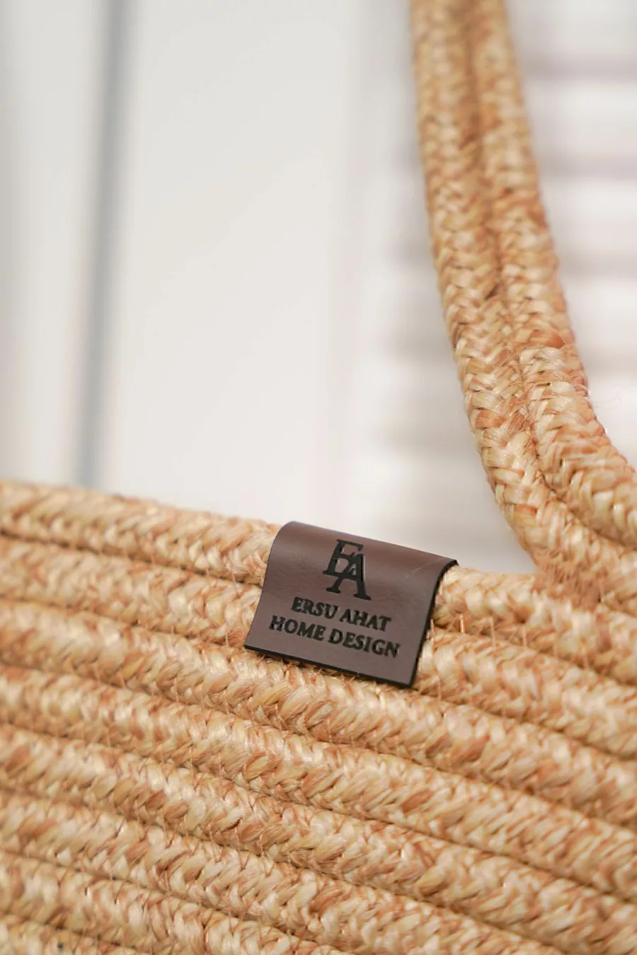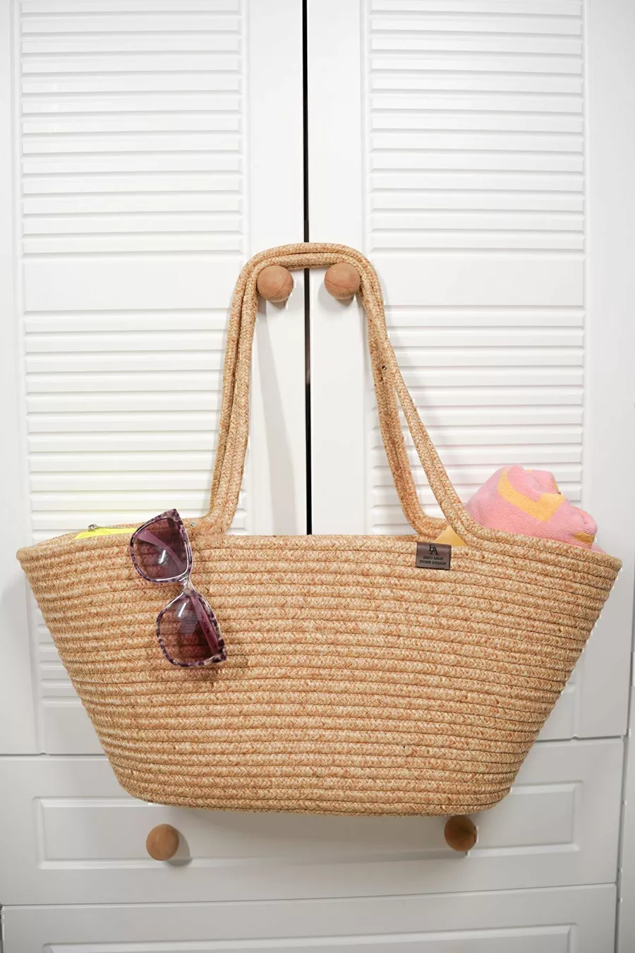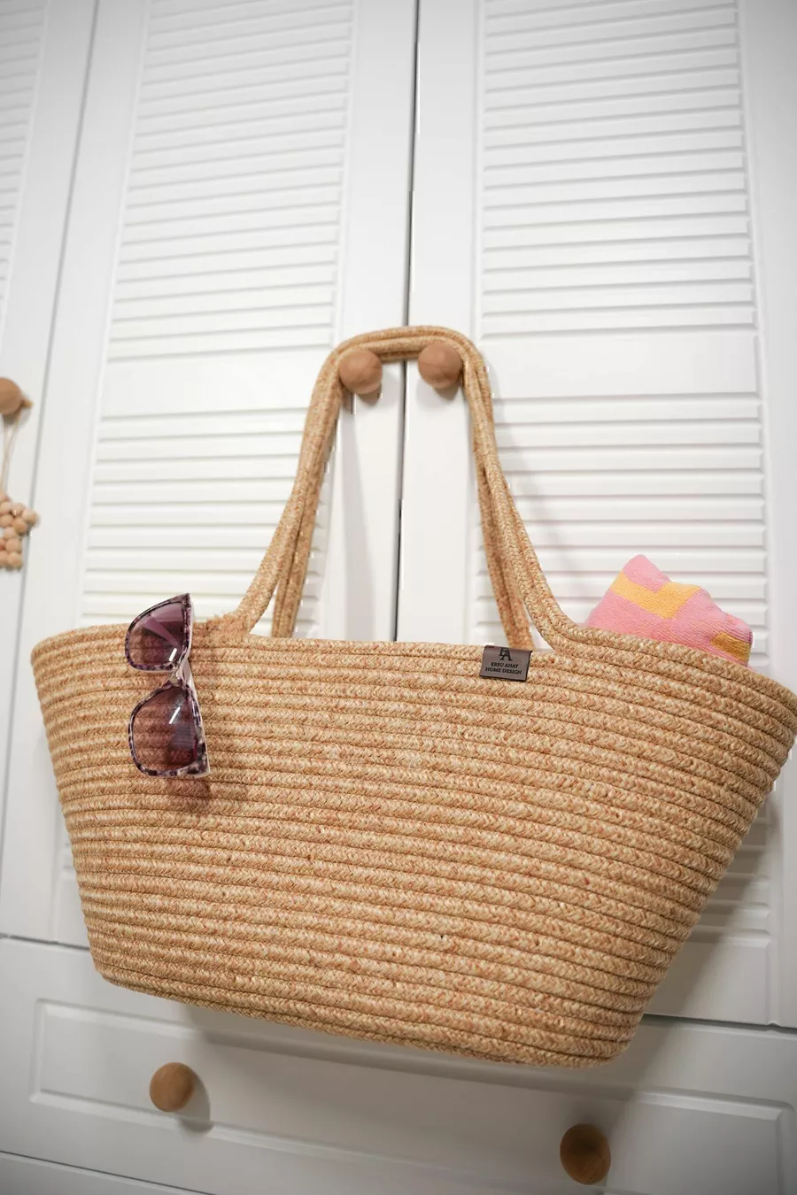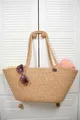 Borsa da spiaggia femminile in juta naturale intrecciata a mano, color beige-crema