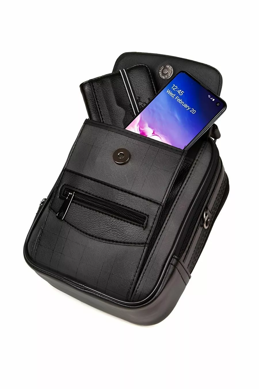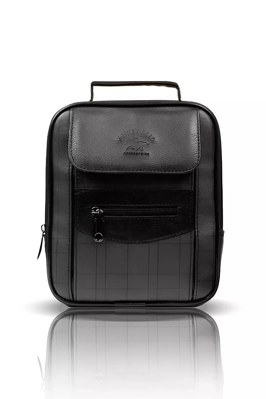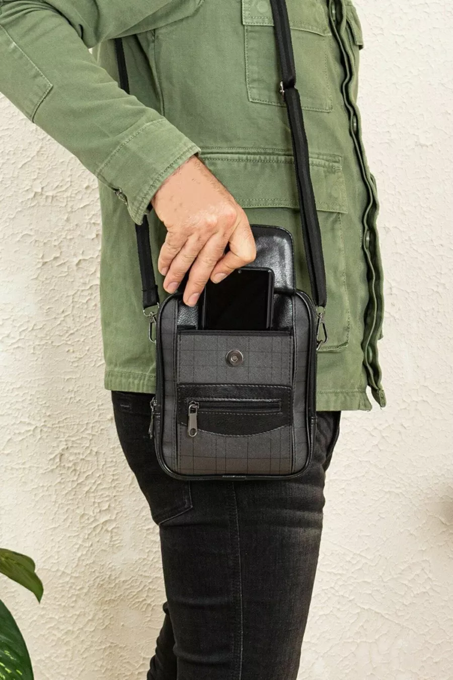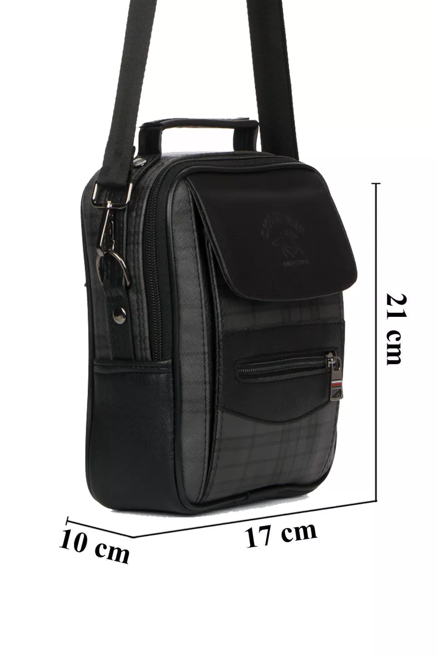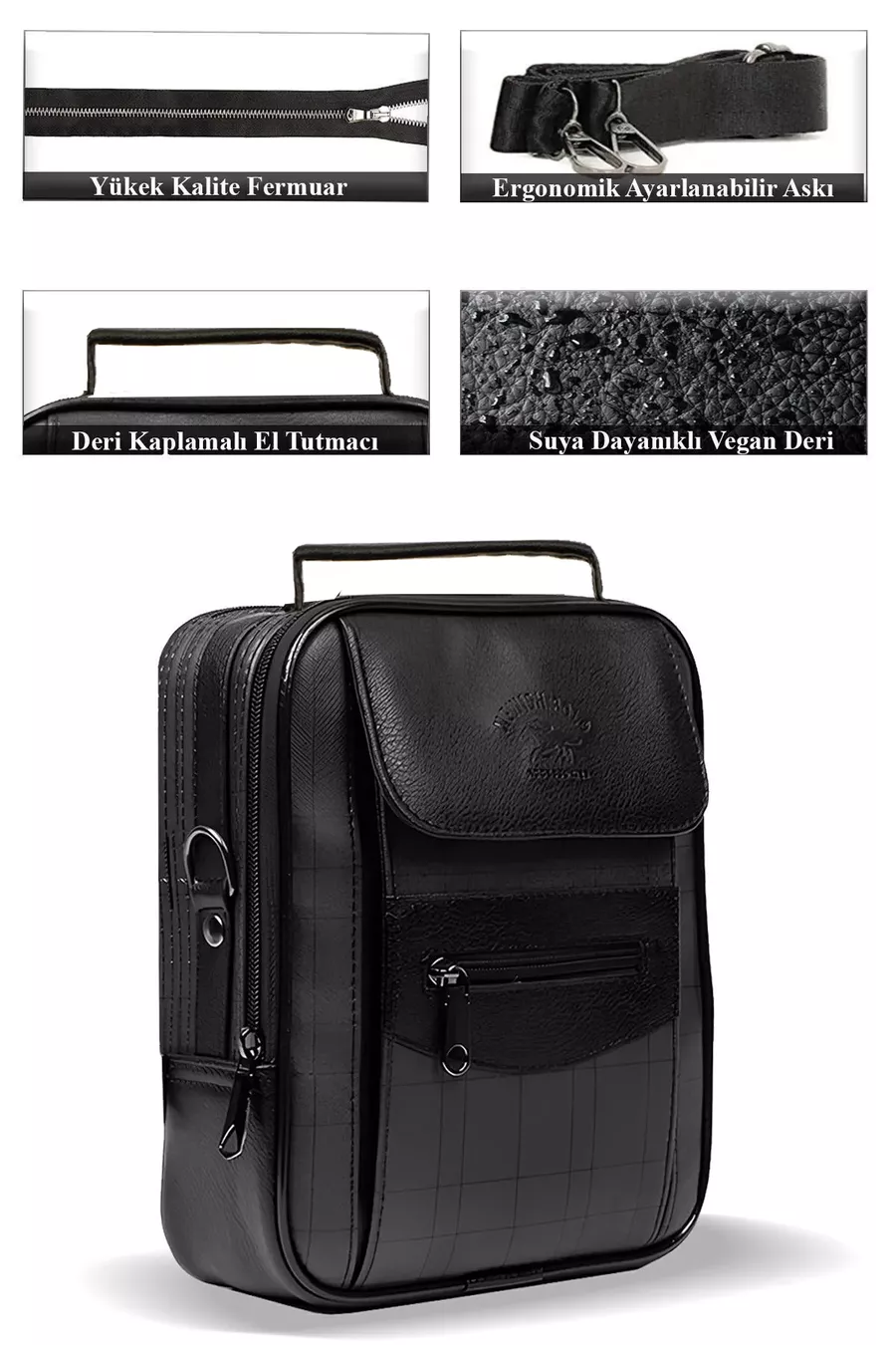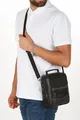 Borsa da uomo media in pelle nera a quadri con scomparti, tracolla regolabile, da portare a mano o a spalla