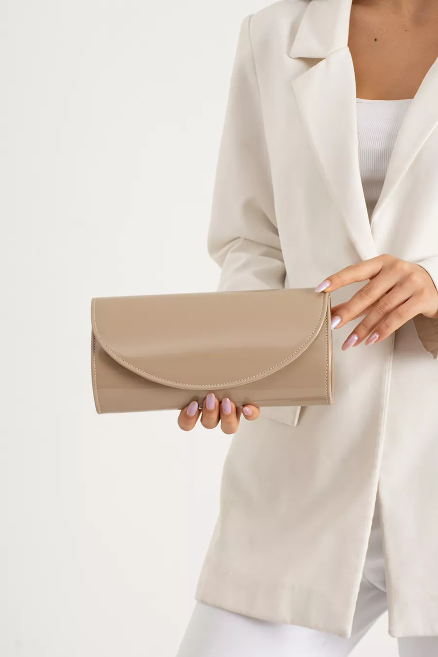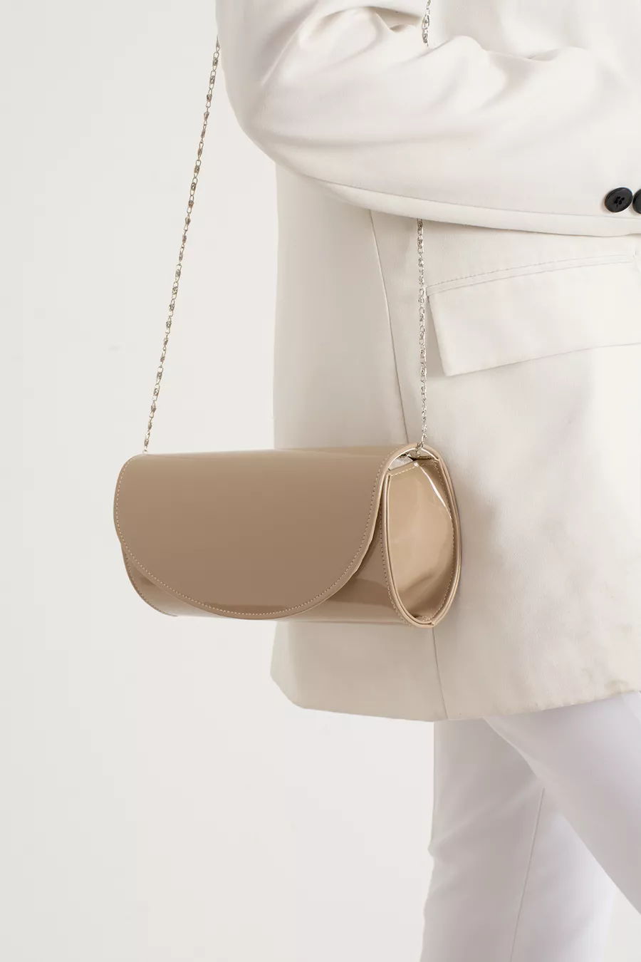 Materiale: Vernice Motivo: Liscio Colore: Beige Istruzioni di lavaggio: Tipo 4 Qualità della pelle: Pelle sintetica Tipo di tessuto: Non specificato Collezione: Party Ambiente: Party Origine: TR