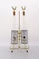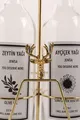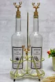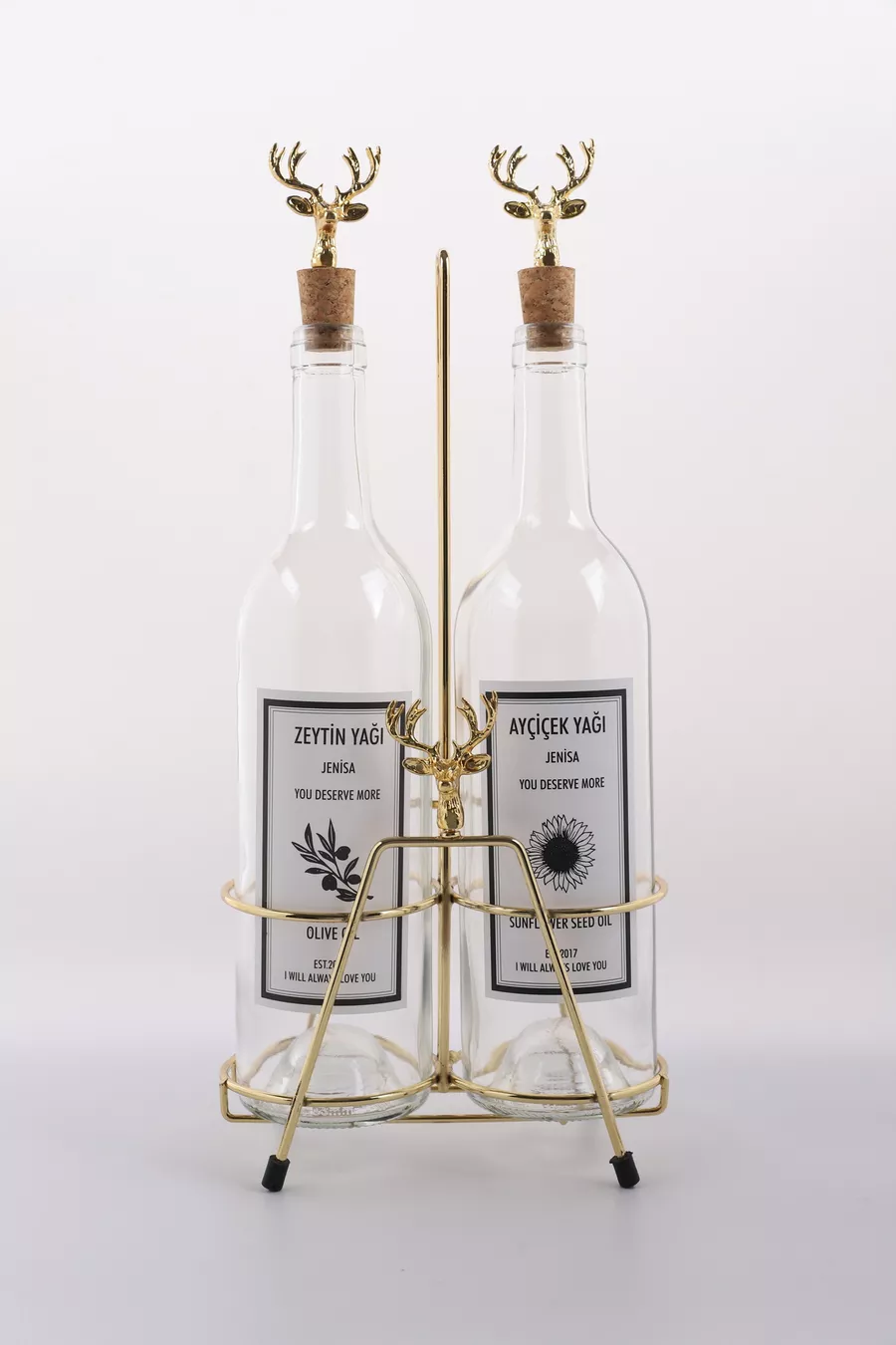 Bottiglia Trasparente Porta Olio con Tappo a Sughero, Supporto Dorato e Decorazione a Cervo Color Oro