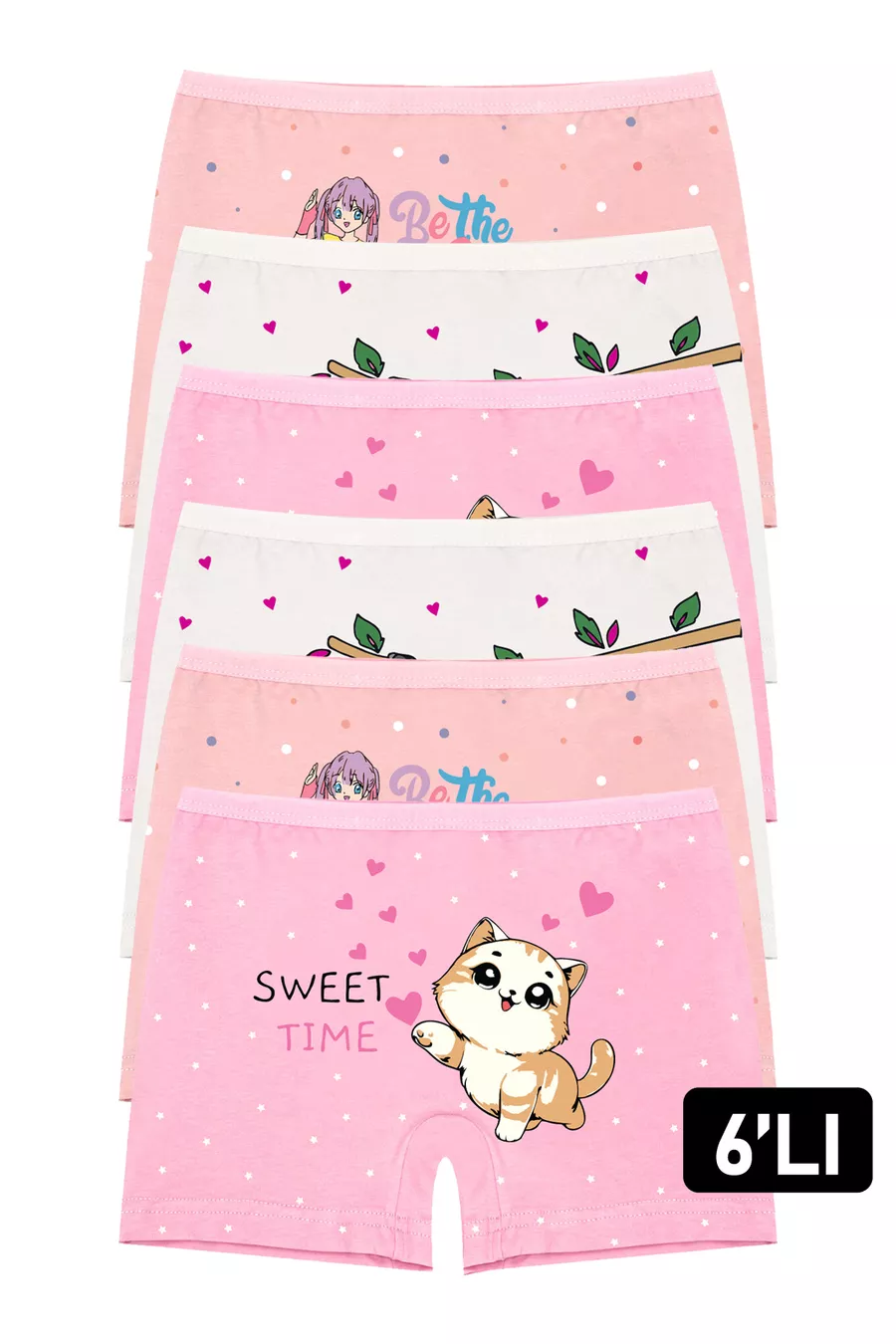 Boxer elasticizzati stampati colorati per bambina, confezione da 6