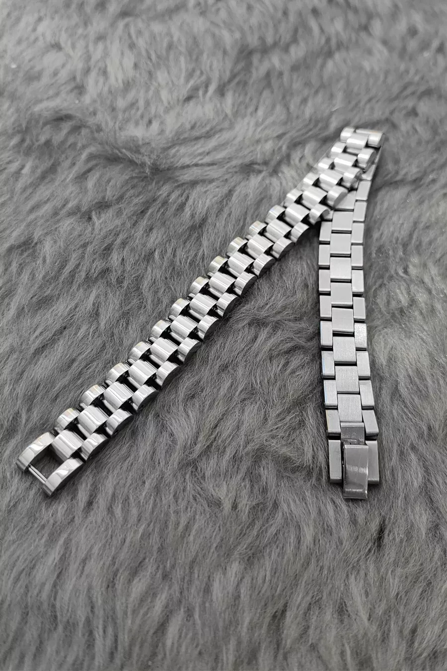 Bracciale da uomo in acciaio grigio mm × cm, lucido e opaco