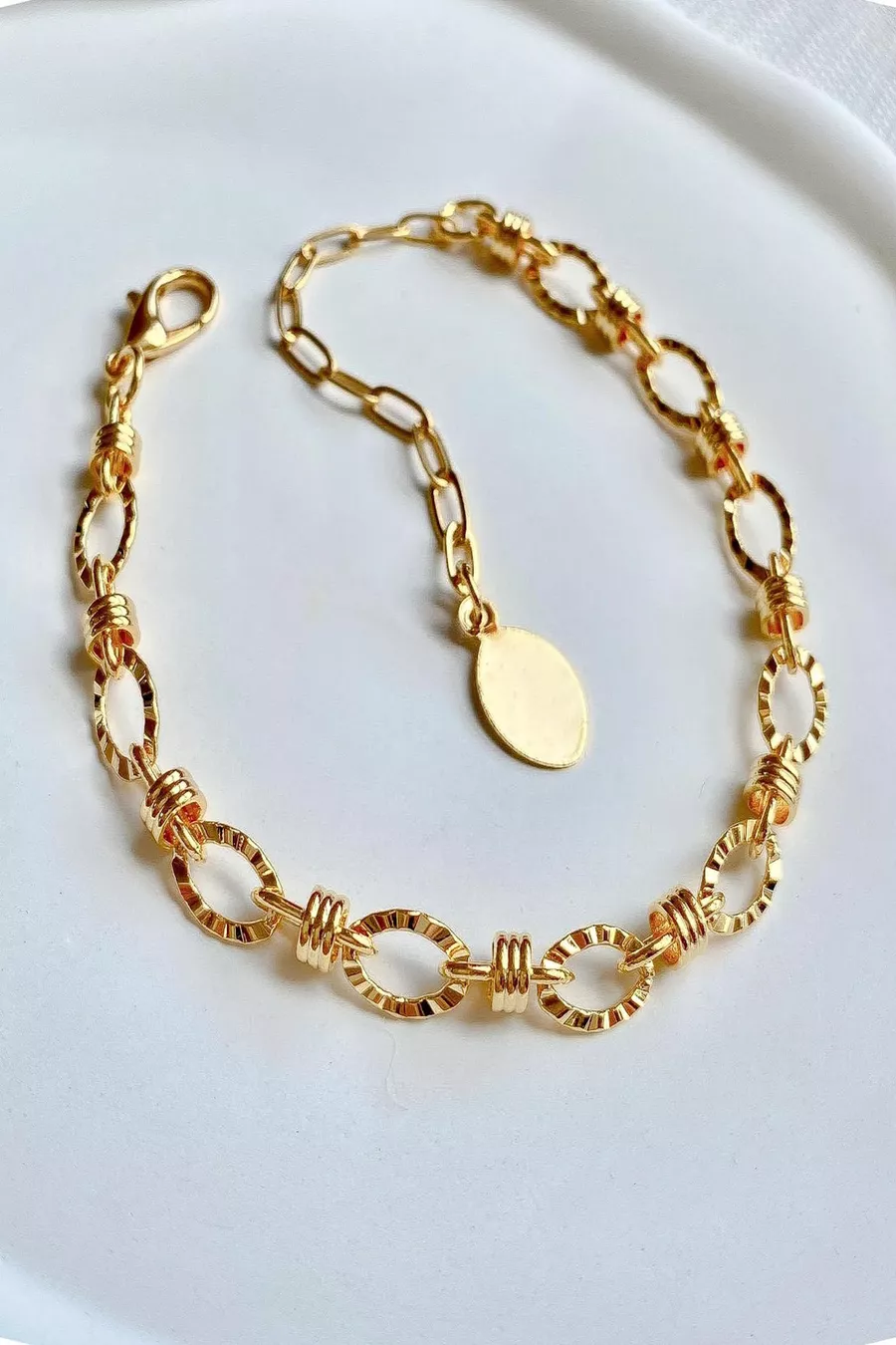 Braccialetto da donna con finitura speciale, nodo ellittico schiacciato, catena regolabile