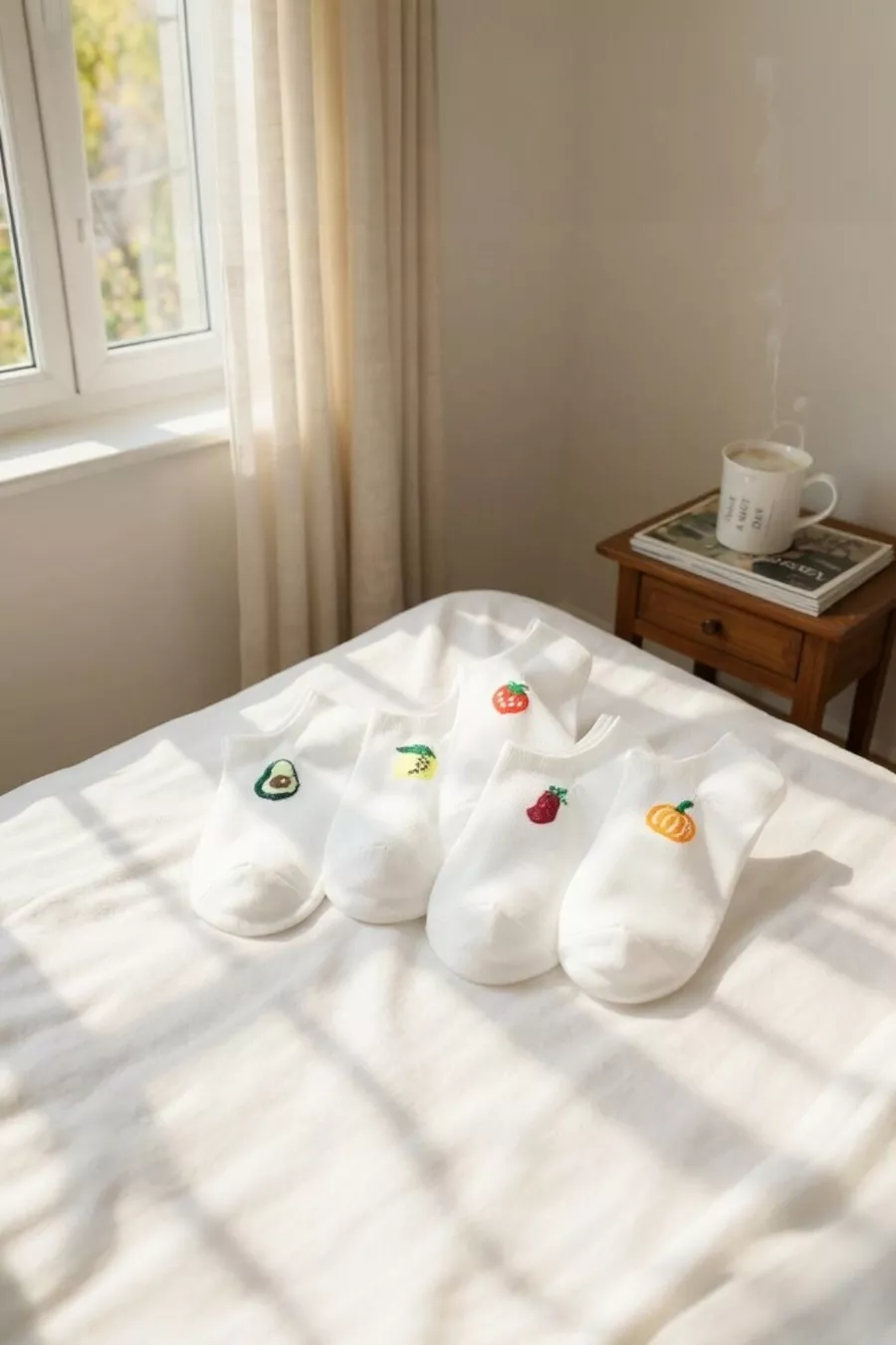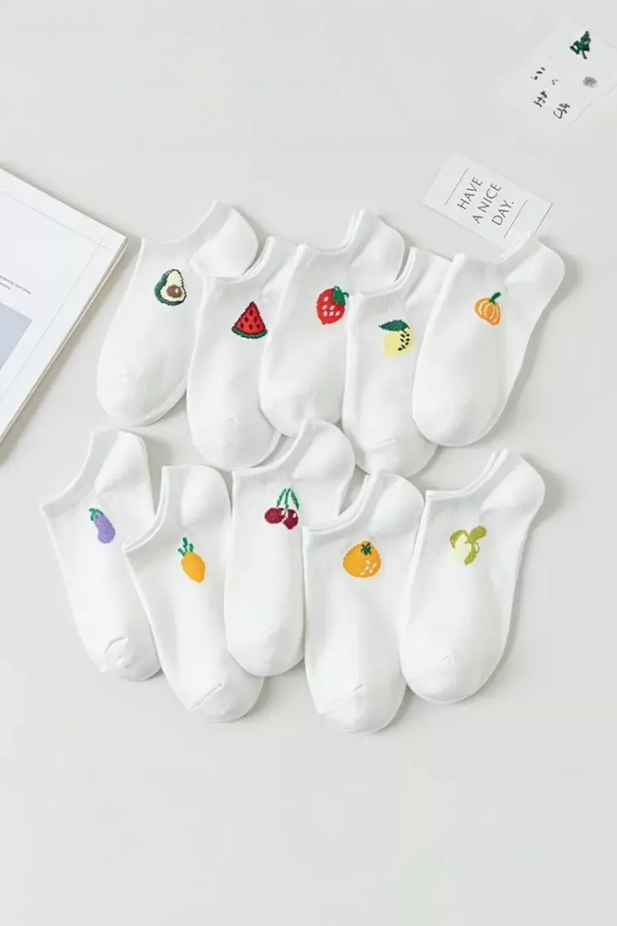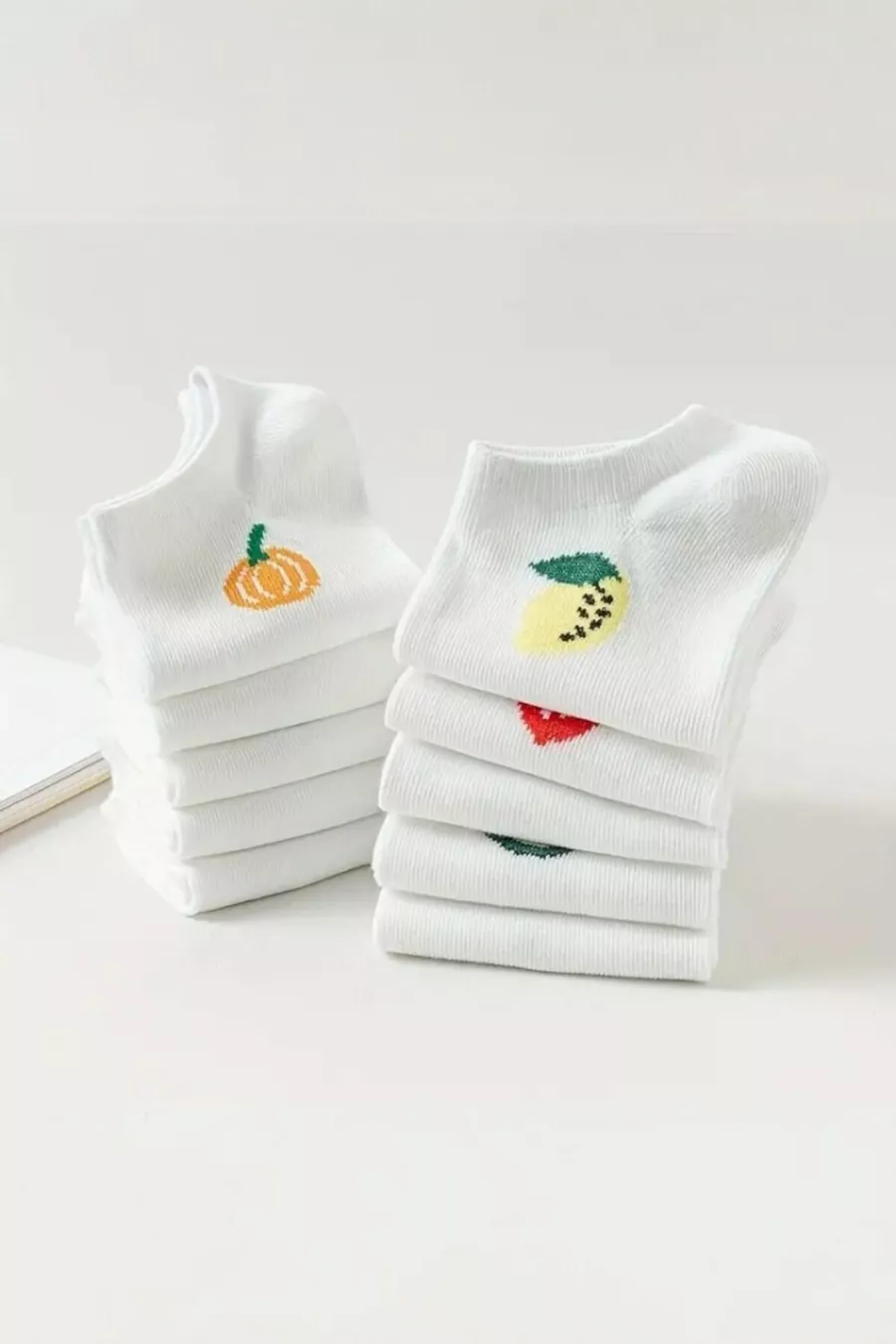 Calze da ballerina da donna con fantasia frutta, in cotone di qualità premium, confezione da paia