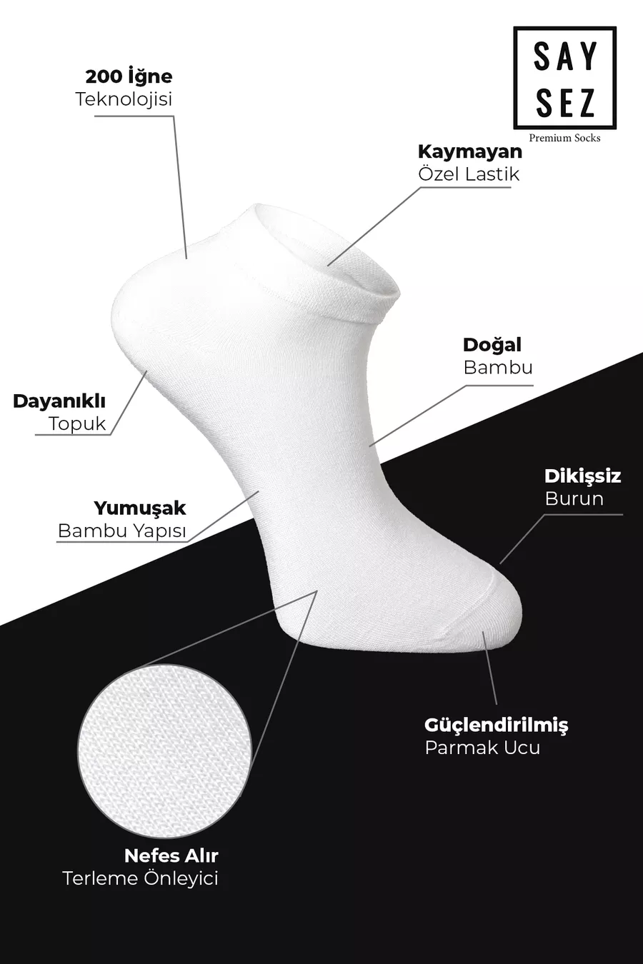 Calze da uomo in bamboo, bianche, senza cuciture, premium, confezione da 6