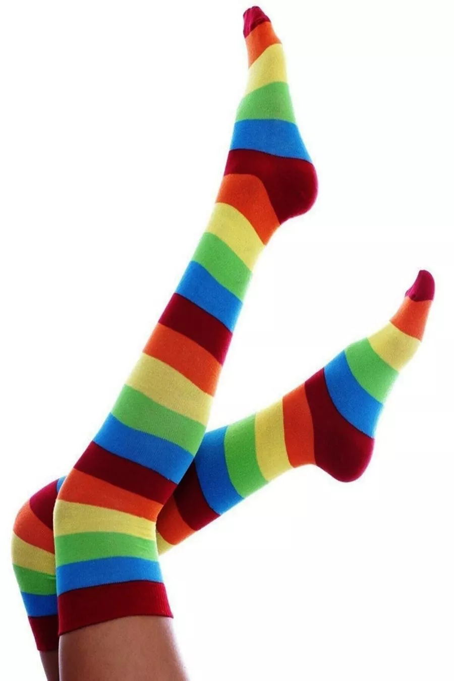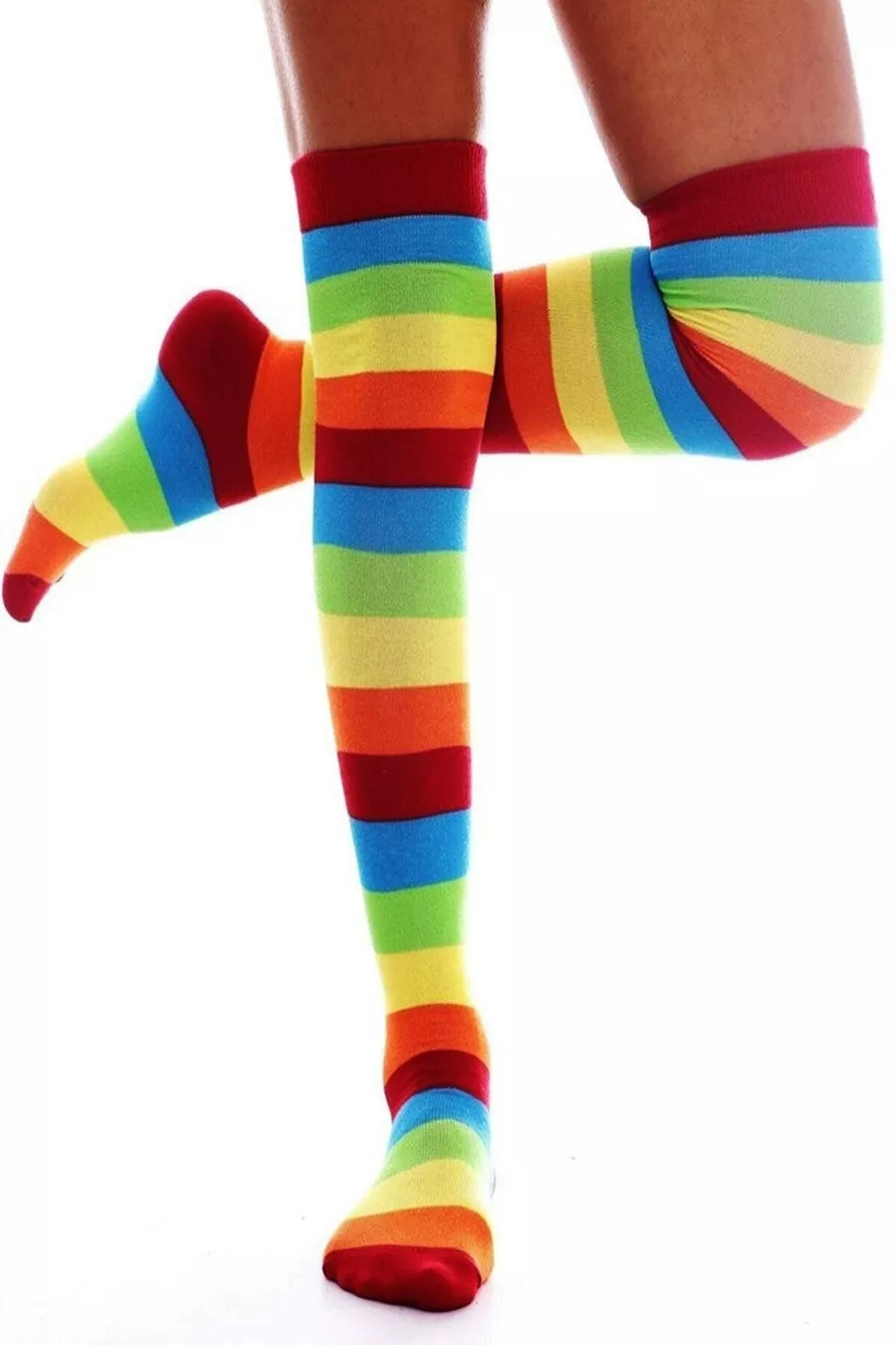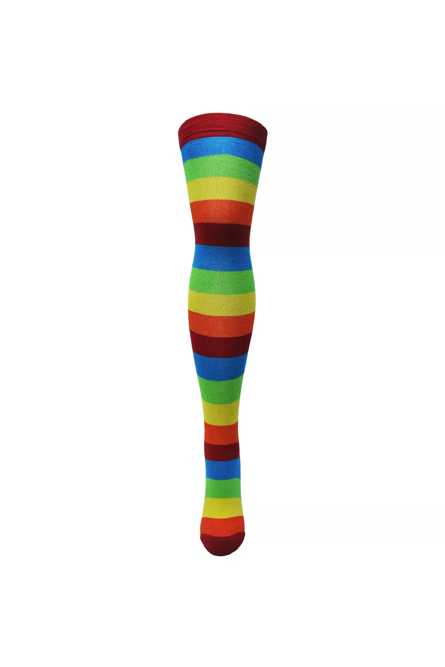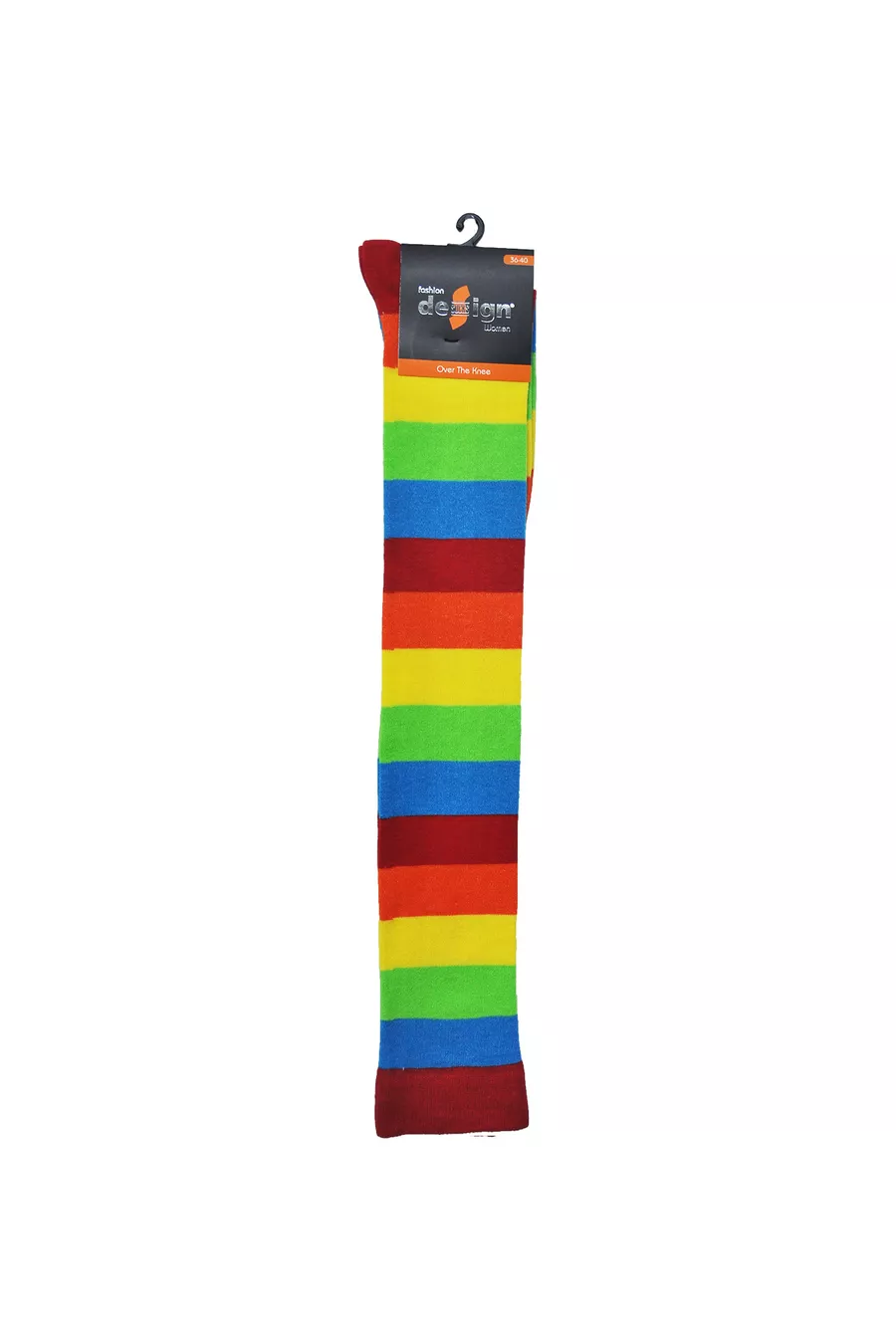 Calze da donna in cotone sopra il ginocchio a righe larghe arcobaleno - Calze fantasiose