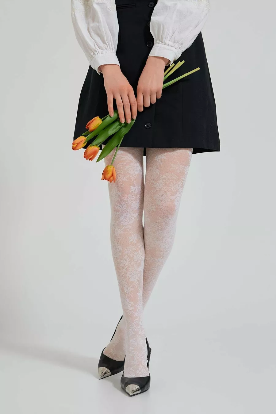 Calze trasparenti sottili da donna con dettagli in pizzo bianche