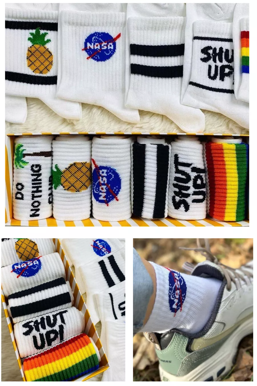 Calzini da uomo e donna, calze lunghe, calzini colorati e fantasia, 6 pezzi