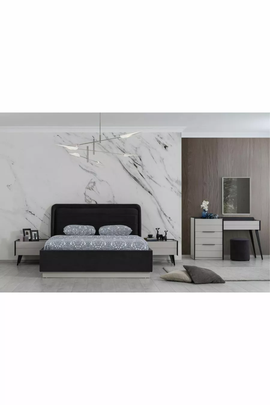 Contenuto del set: Letto con contenitore + 2 comodini + Cassettiera + Armadio