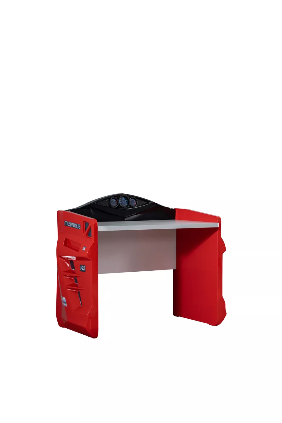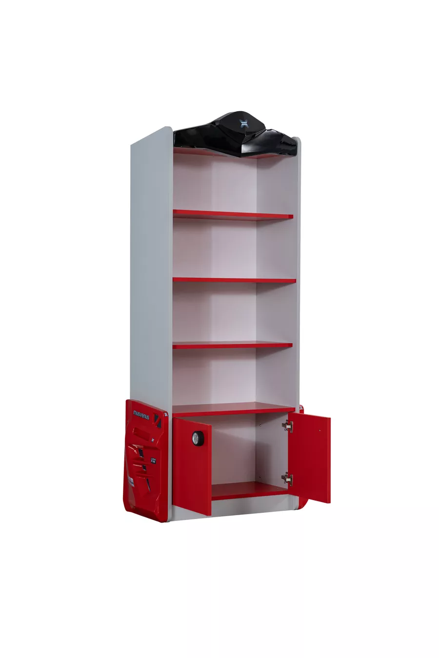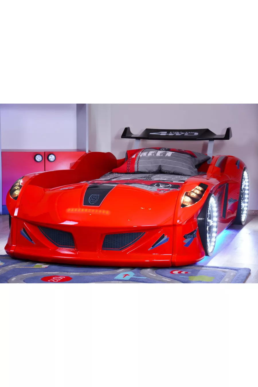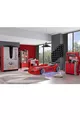 Camera dei Bambini - Letto con Macchina Jaguar, Armadio a 3 Ante Sport, Scrivania, Comò, Libreria - Rosso