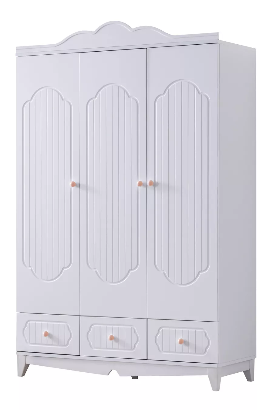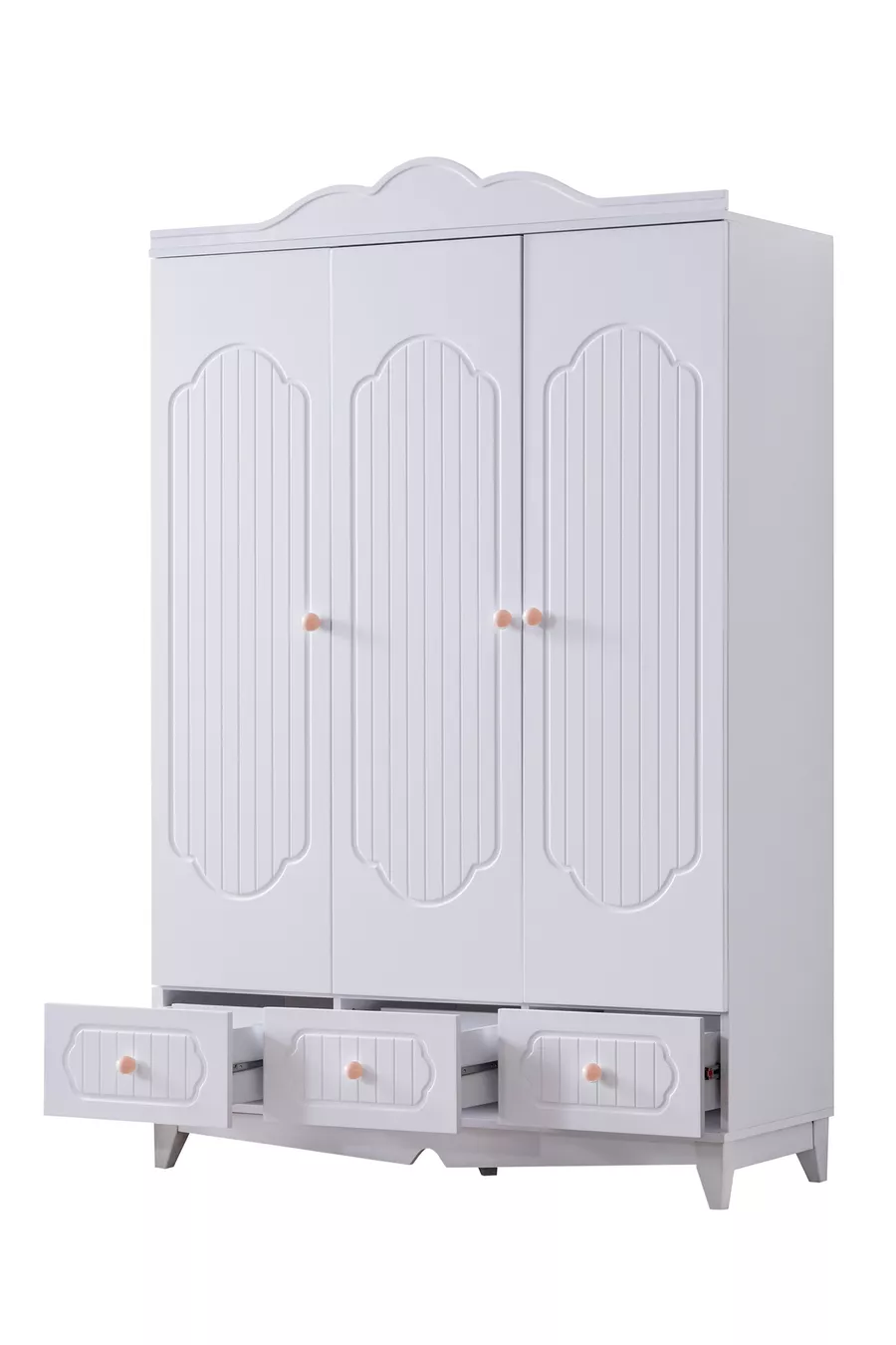 Camera per bambini Flower, letto a castello Flower con cassetti, armadio a 3 ante - Bianco