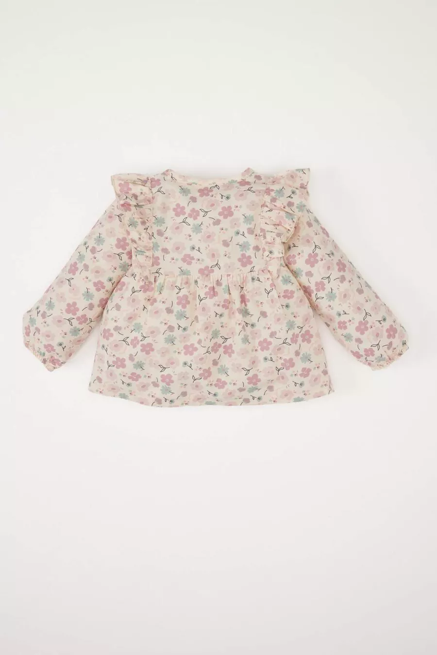 Camicetta a maniche lunghe in twill con scollo a girocollo e fantasia floreale per bambina SP