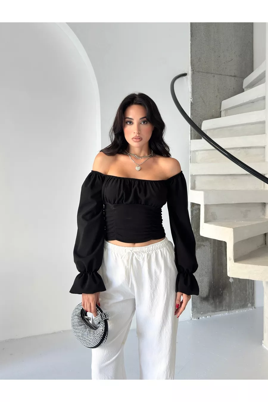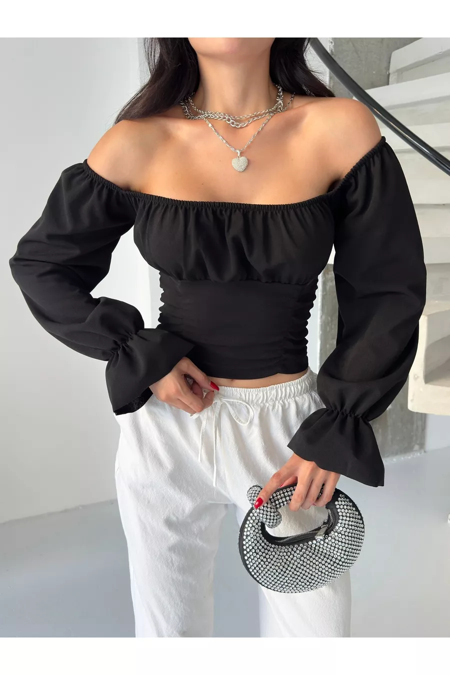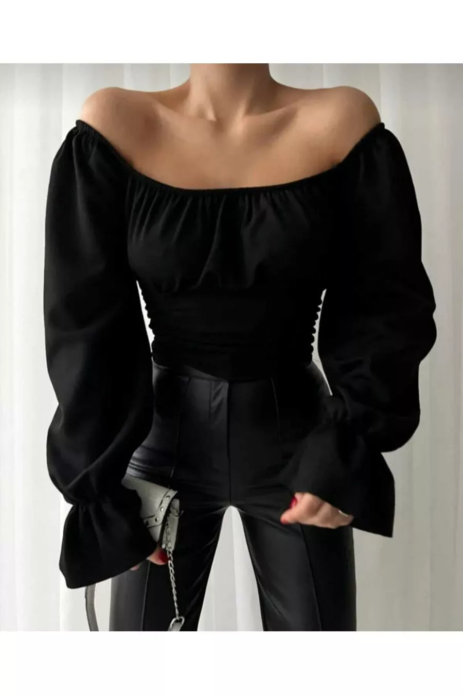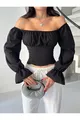CAMICETTA CREPE A MANICHE A PALLONCINA CON MANICHE A PALLONCINA DA DONNA E DETTAGLI ARRABBIATI