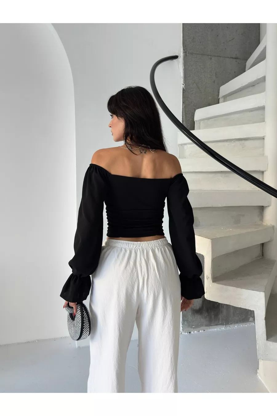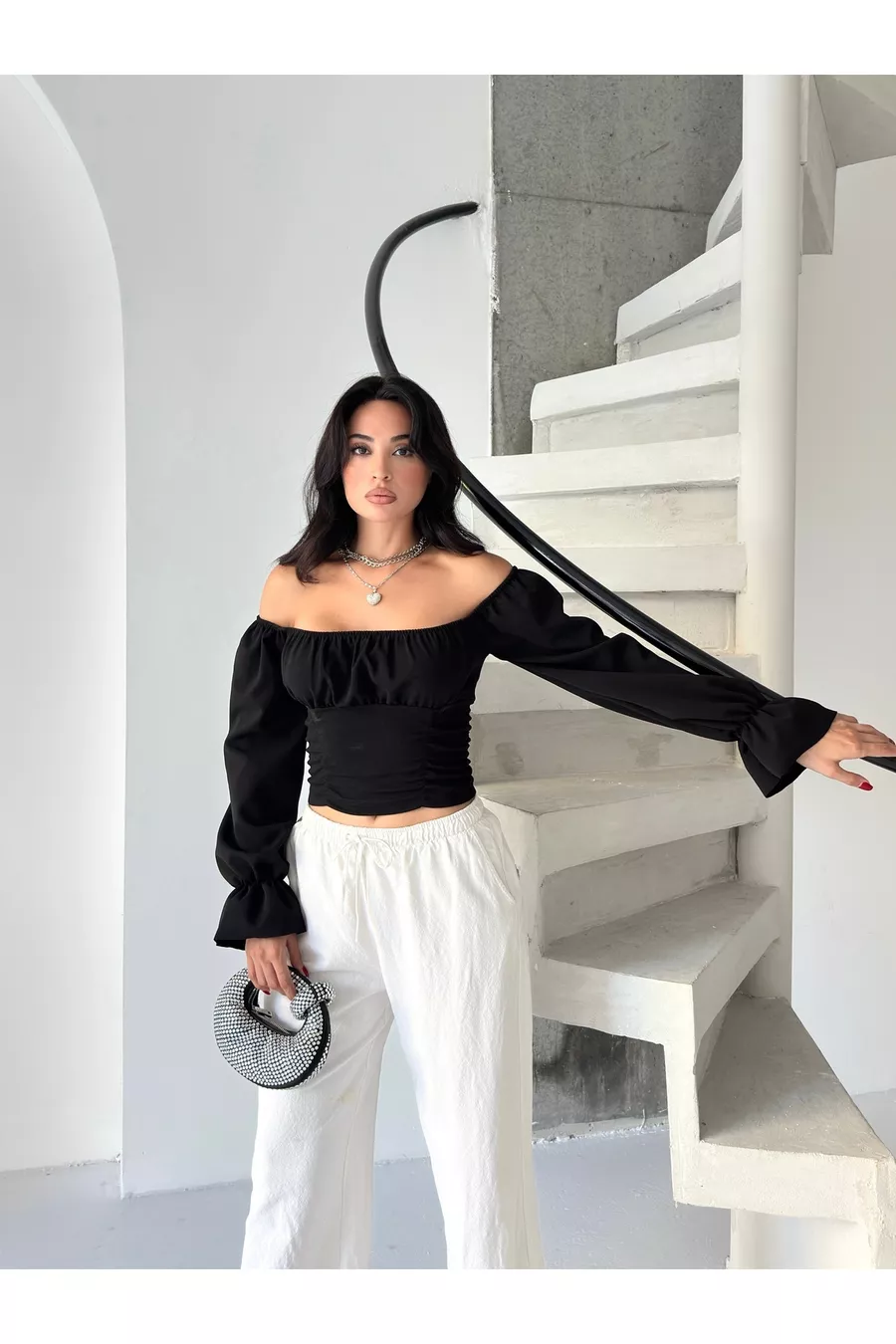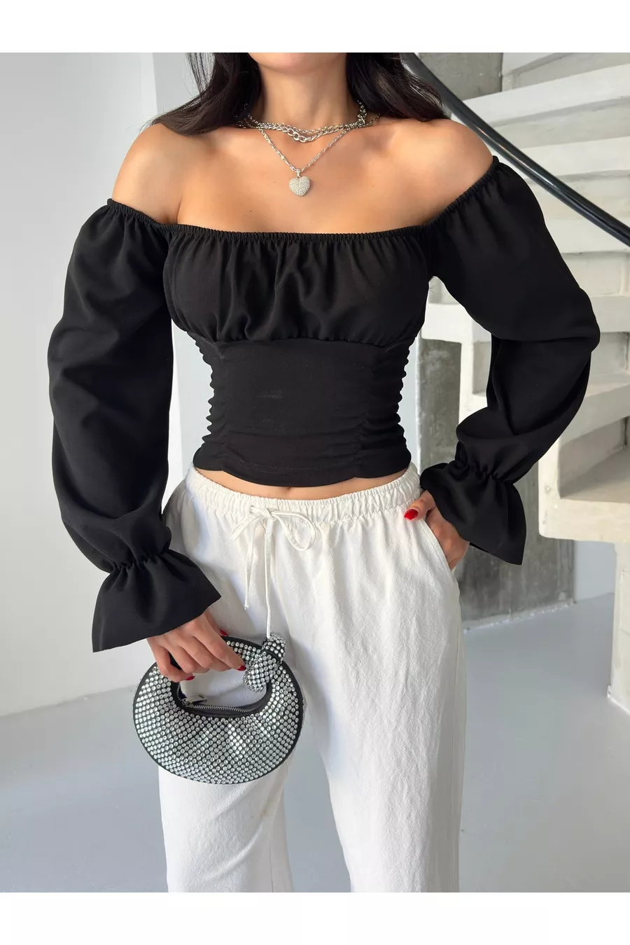 CAMICETTA CREPE A MANICHE A PALLONCINA CON MANICHE A PALLONCINA DA DONNA E DETTAGLI ARRABBIATI