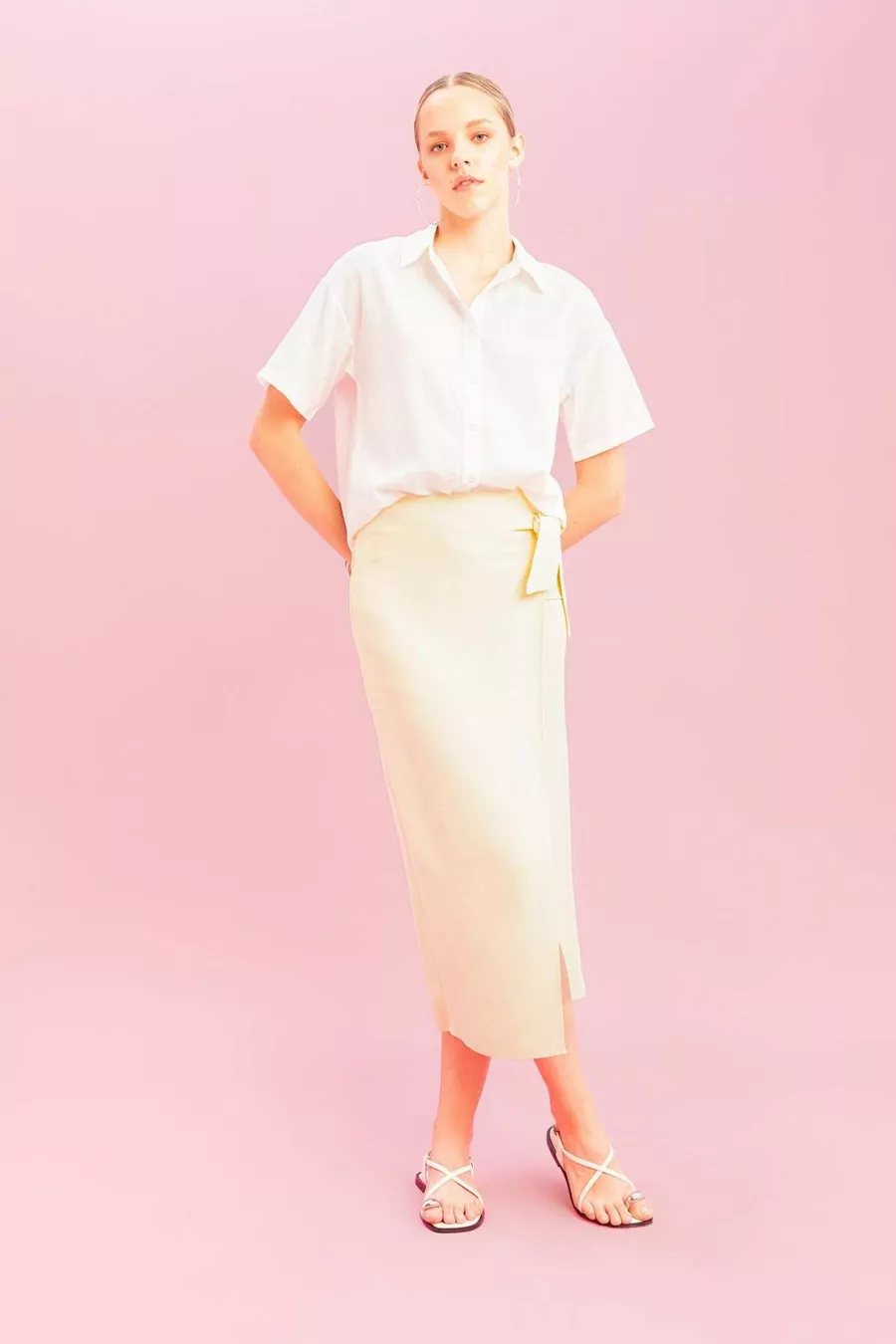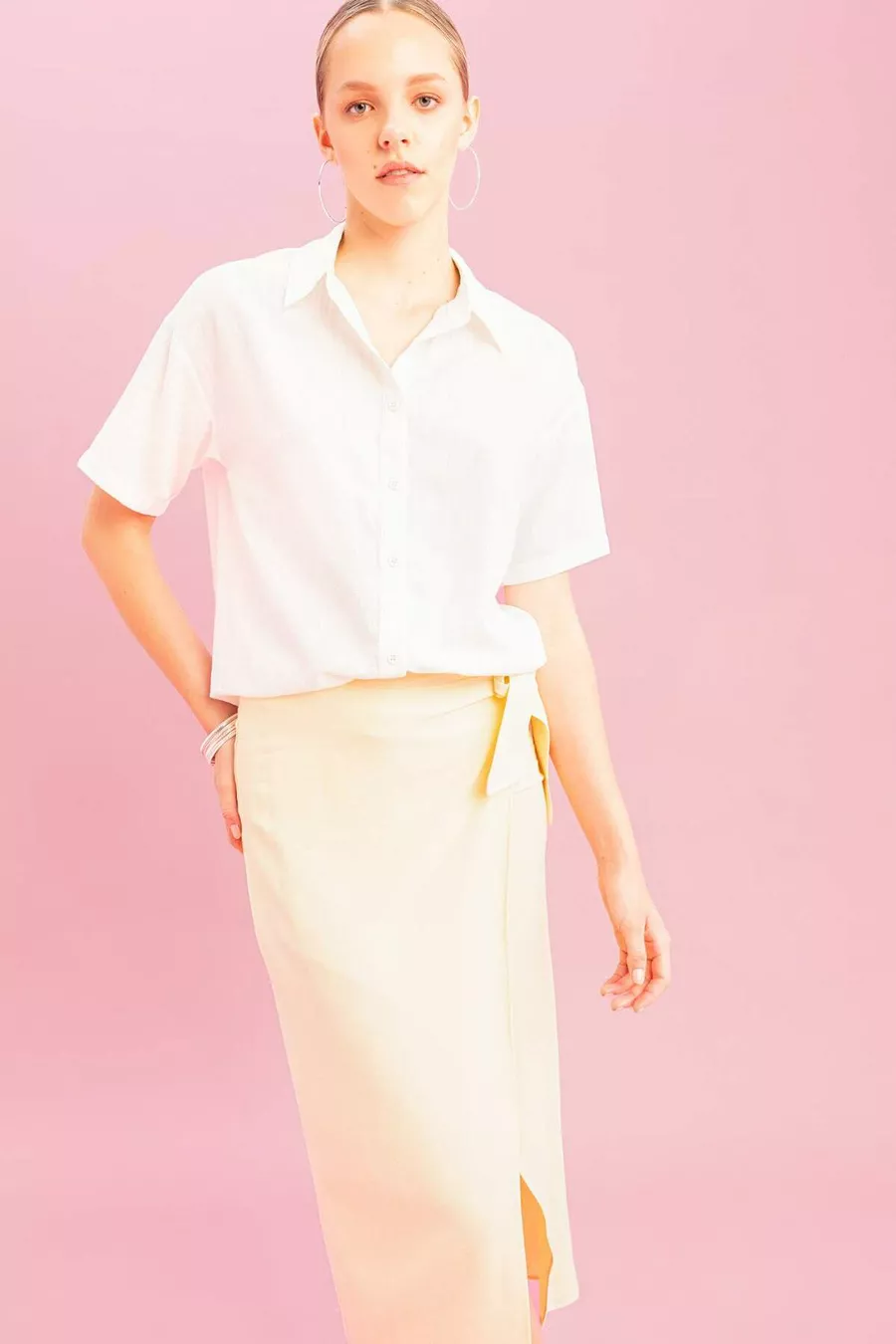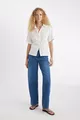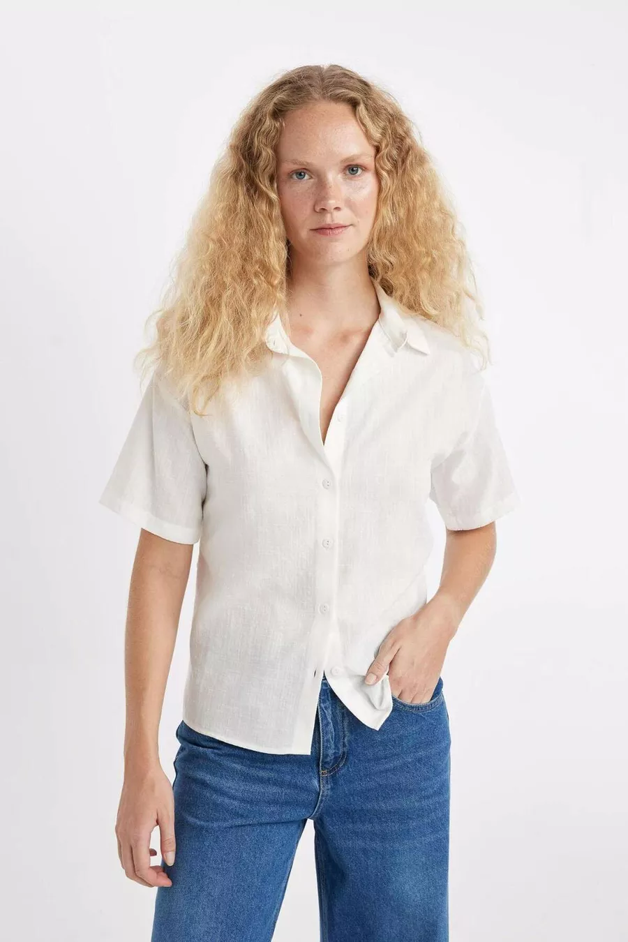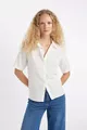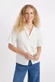Camicia a maniche corte in lino oversize modello ampio SM