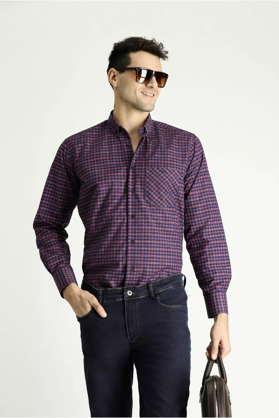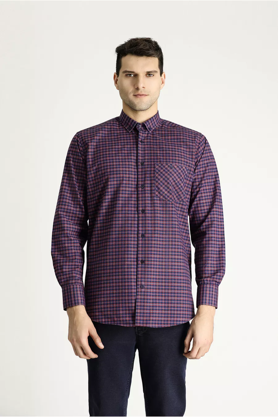 Camicia a maniche lunghe regular fit in cotone scozzese, facile da stirare, con collo a bottoni