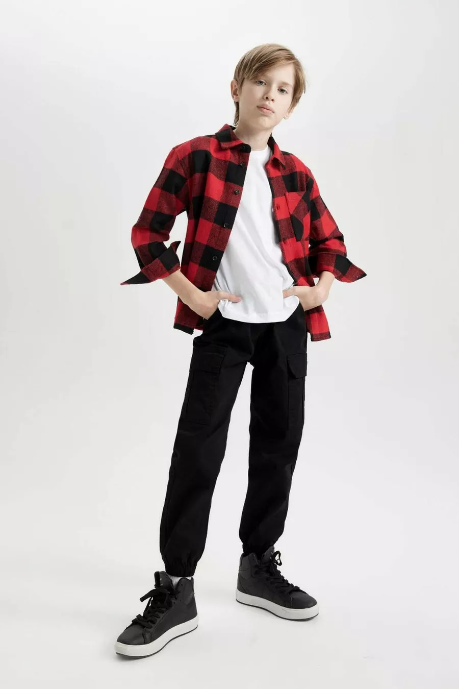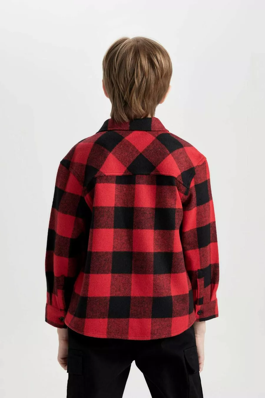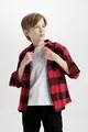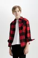 Camicia a quadri da bambino maschio, oversize, modello ampio, con colletto polo, in cotone a maniche lunghe WN