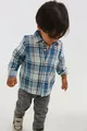 Camicia a maniche lunghe per neonati maschi a quadri di colore turchese