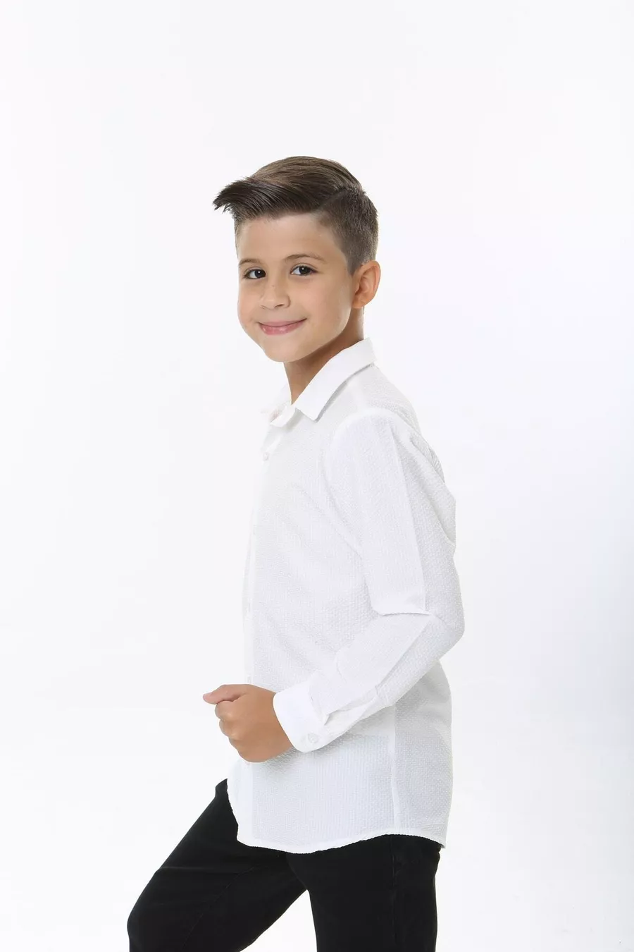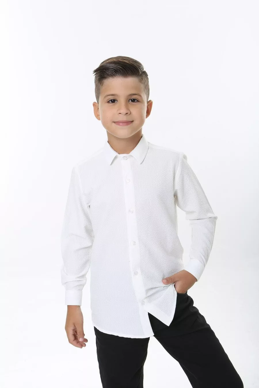 Camicia Bianca per Bambini Speciale Capodanno Tessuto Goffrato Non Richiede Stiratura