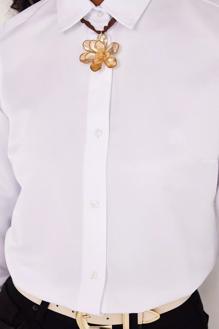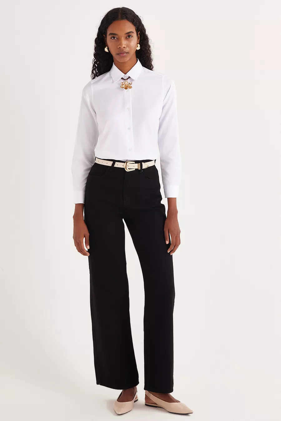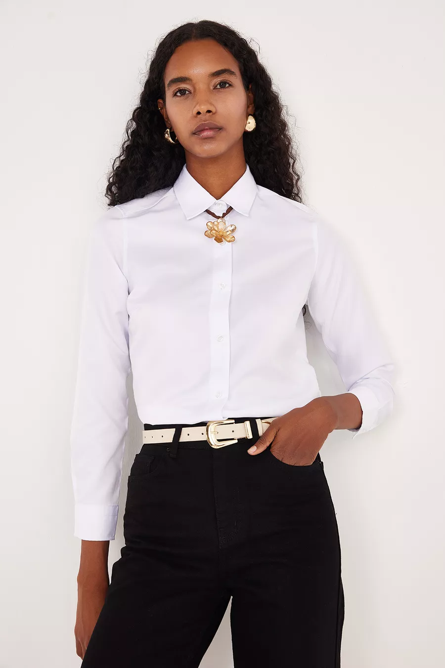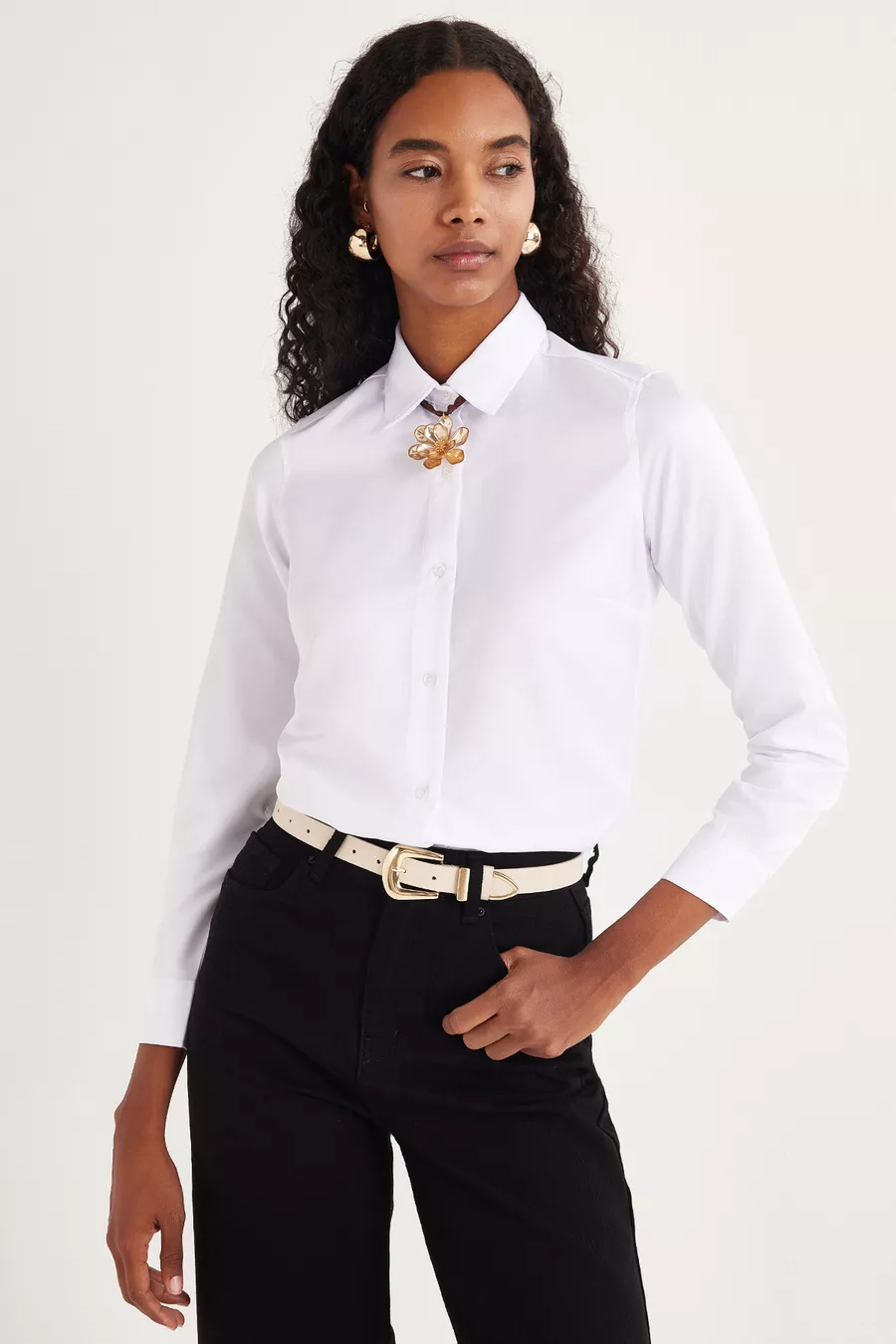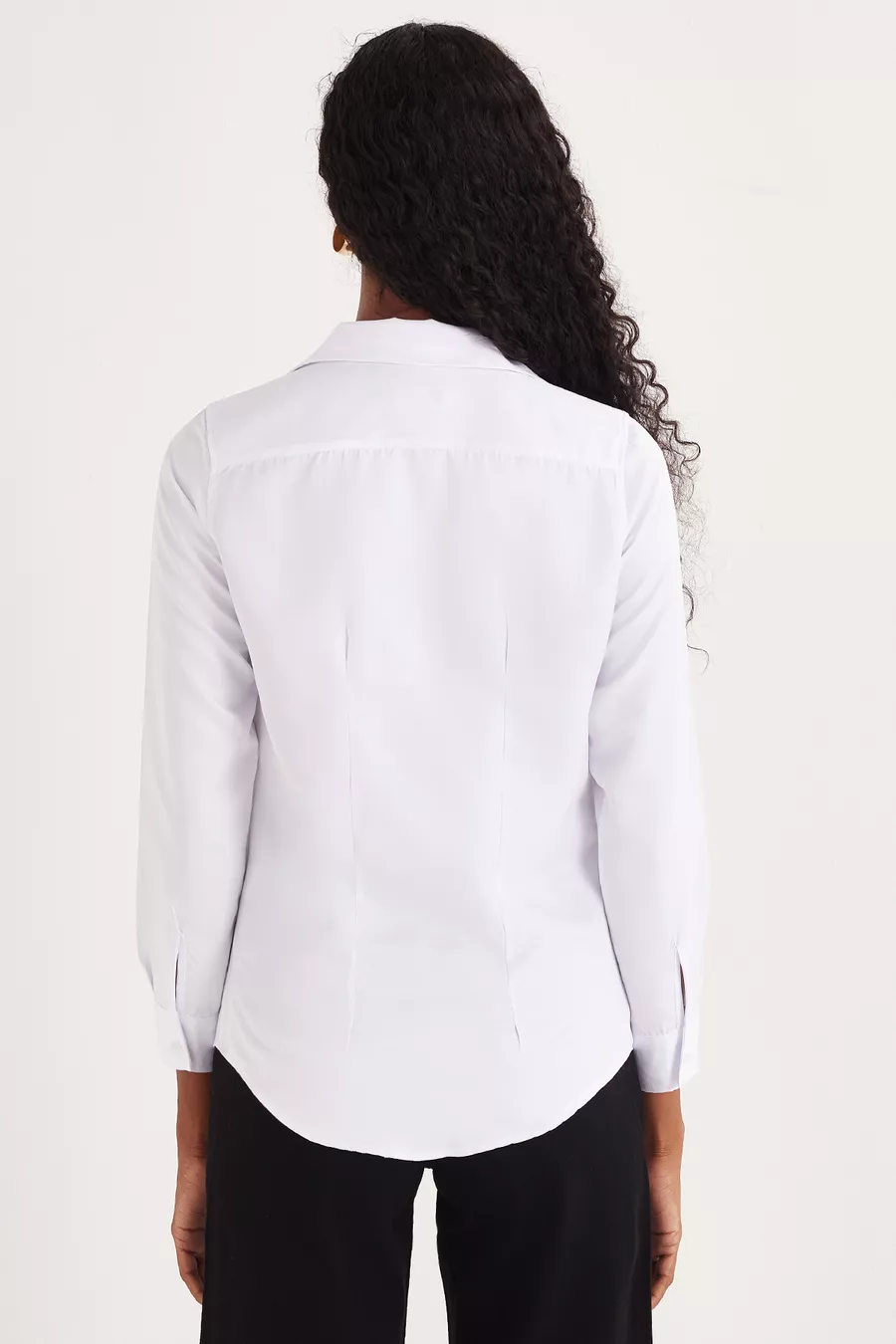 Camicia bianca basic da donna, slim fit, taglio aderente al corpo, maniche lunghe