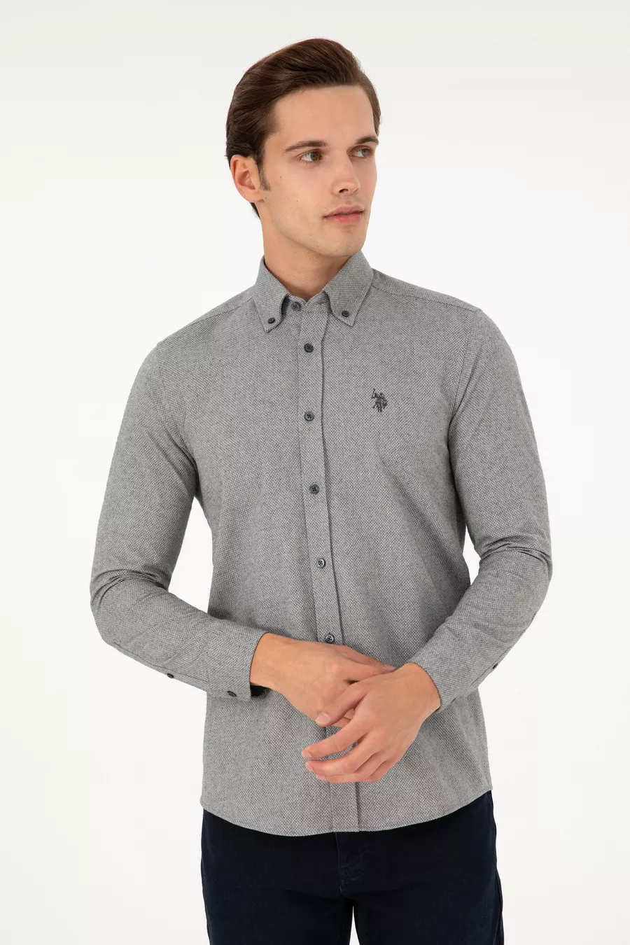 Camicia da uomo grigio antracite a maniche lunghe